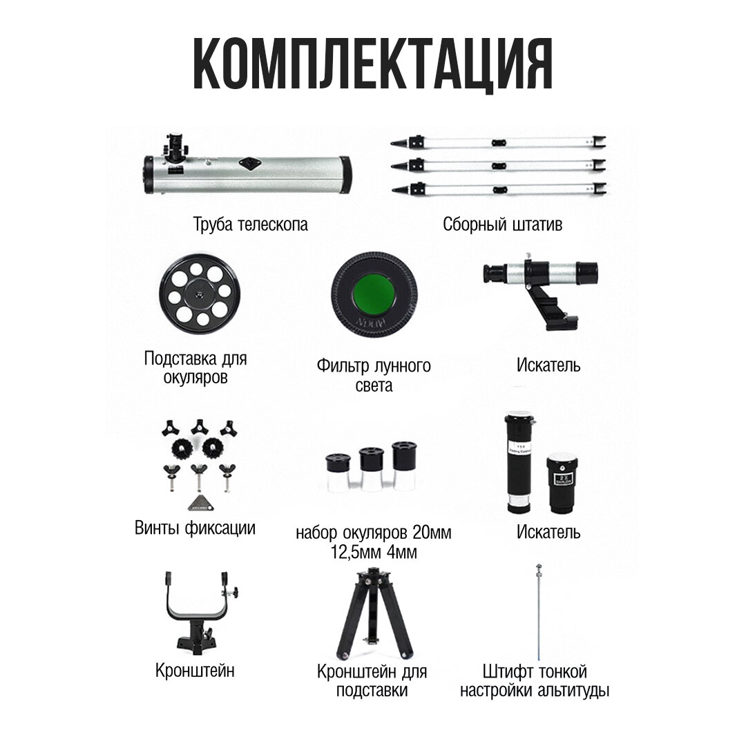 "Einfil 70076" - телескоп-рефлектр с оптическим искателем, телескоп астрономический, кратное увеличение 350Х, мощный, профессиональный, для дома