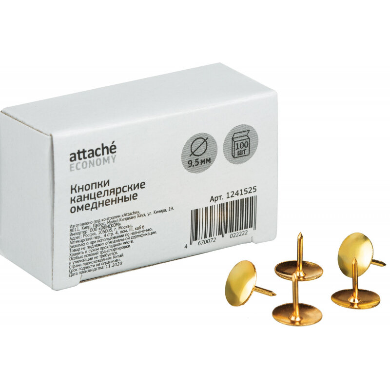 Кнопки канцелярские Attache Economy металлические золотистые (100 штук в упаковке) интересное: