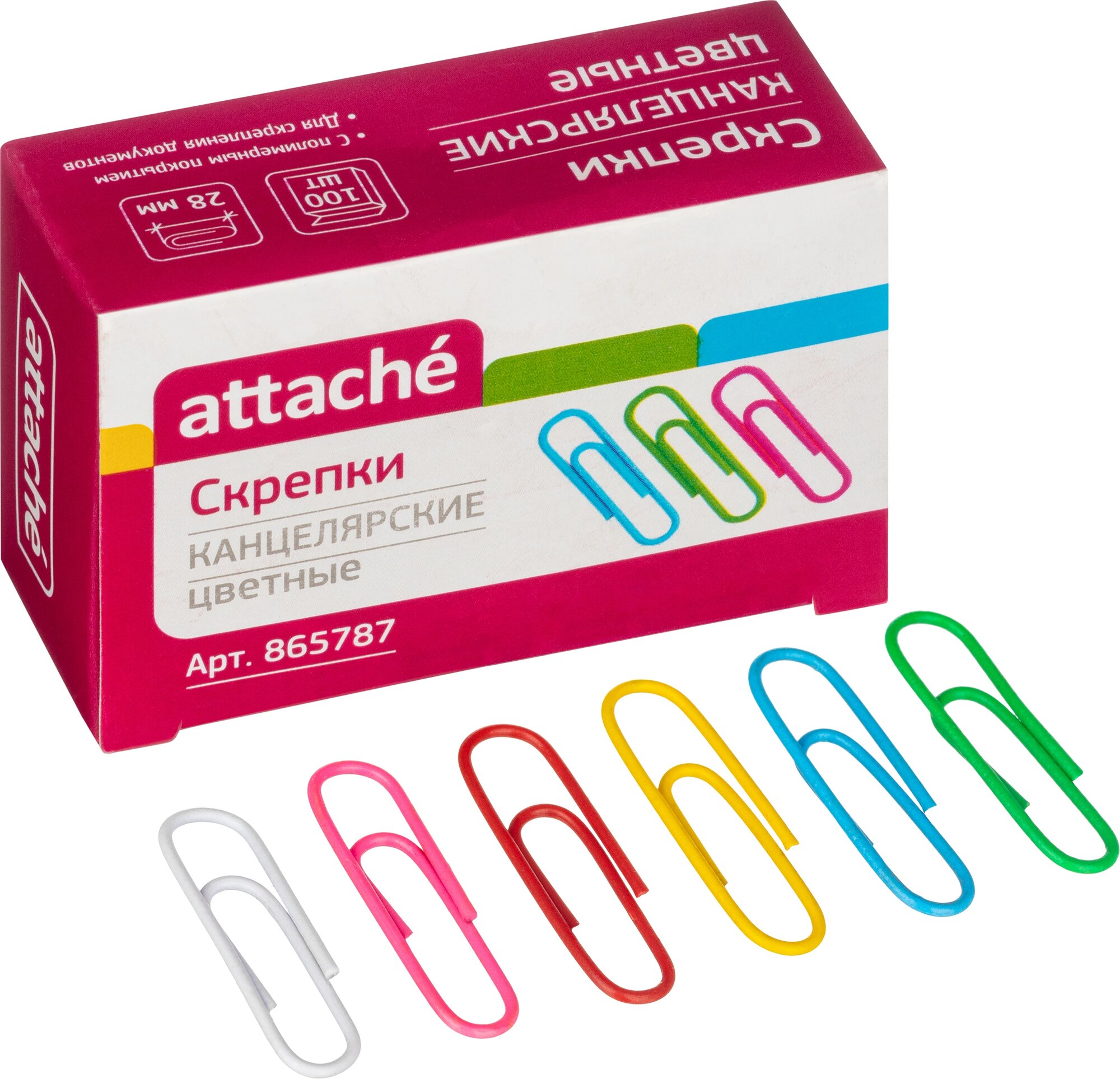 Цветные скрепки Attache 28 мм, полимерное покрытие, картонная коробка, 100 шт в упаковке 865787
