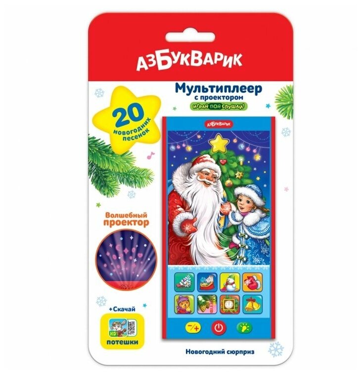 Интерактивная развивающая игрушка Азбукварик Мультиплеер с проектором Новогодний сюрприз