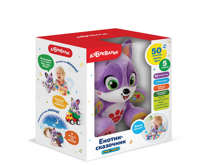 СохранитьЕнотик сказочник, Азбукварик, говорящая мягкая игрушка, знает много сказок и песенок интересное: