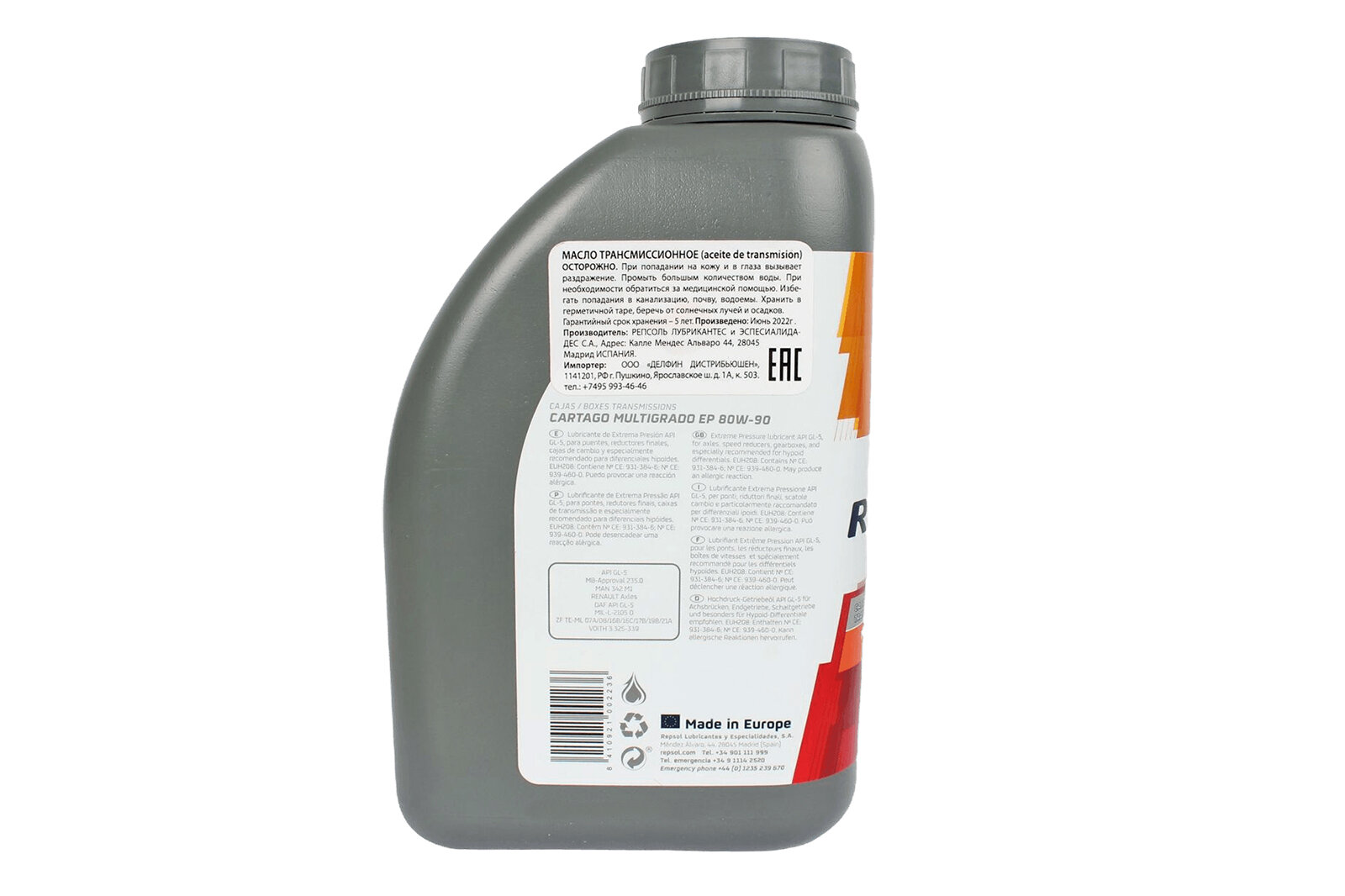 Купить 6036/R Repsol Масло RP CARTAGO MULTIGRADO EP 80W90 1л API GL-5, MB 235.0, MAN 342 M1, VW 727, ZF TE-ML-5A/07A/08/1