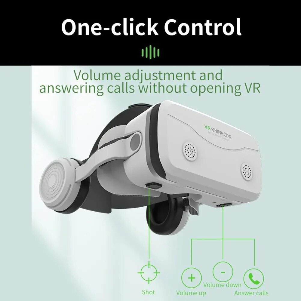 Очки виртуальной реальности для телефона VR Shinecon SC-G15E с наушниками белые