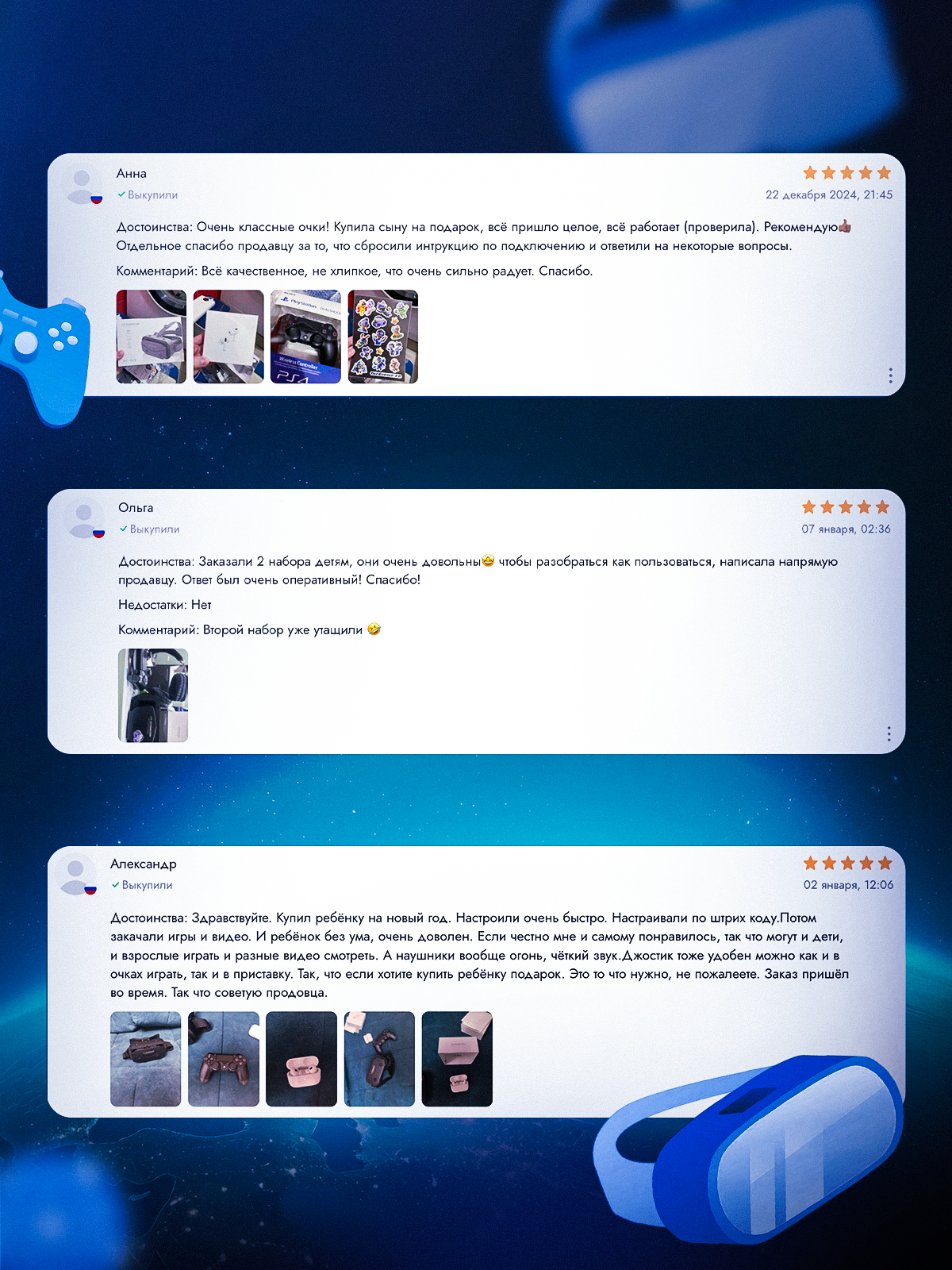 Ниже Вы можете прочитать отзывы на VR очки виртуальной реальности с джойстиком, ознакомится с подробными характеристиками, посмотреть интересные обзоры и фотографии на VR очки виртуальной реальности с джойстиком.