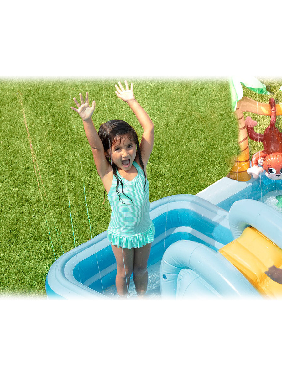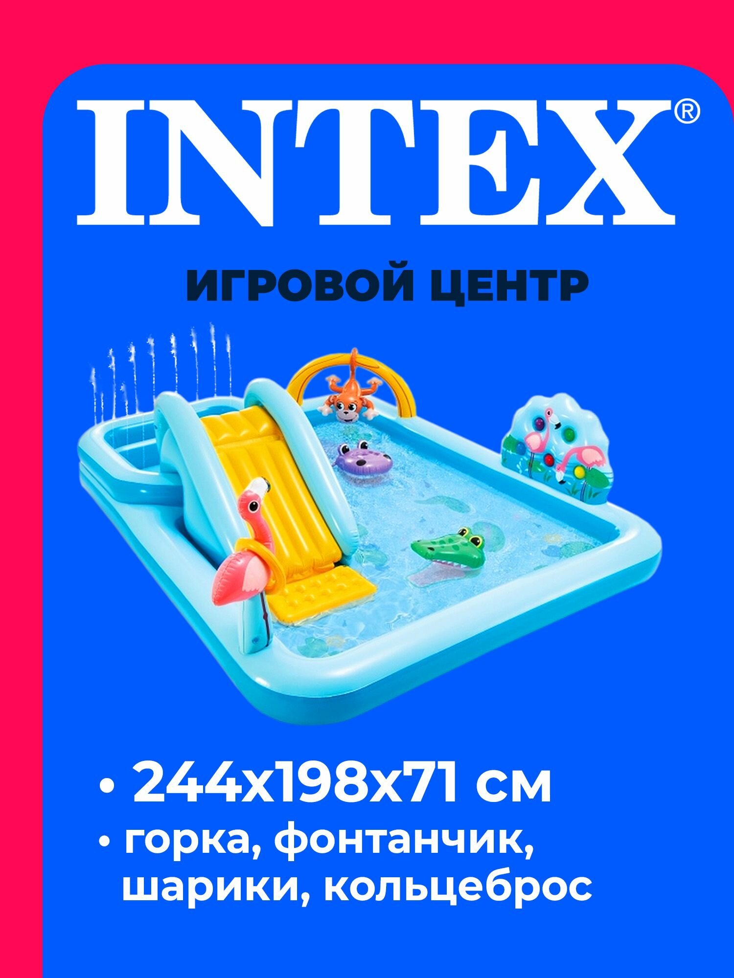 INTEX Игровой центр Джунгли 57161 Intex 244*198*71 см с горкой и фонтаном, клапан 57161