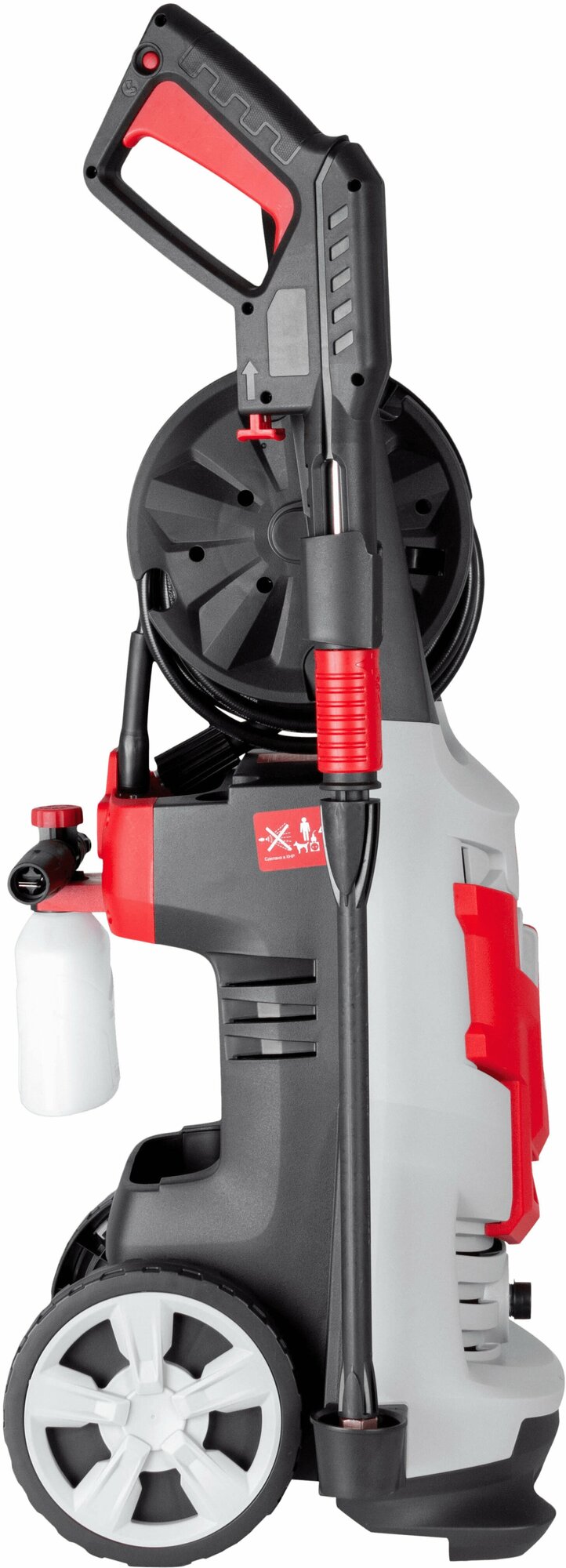 | Плюсы: | Барабан для шланга, защита от случайного включения, большие колеса, пеногенератор. |