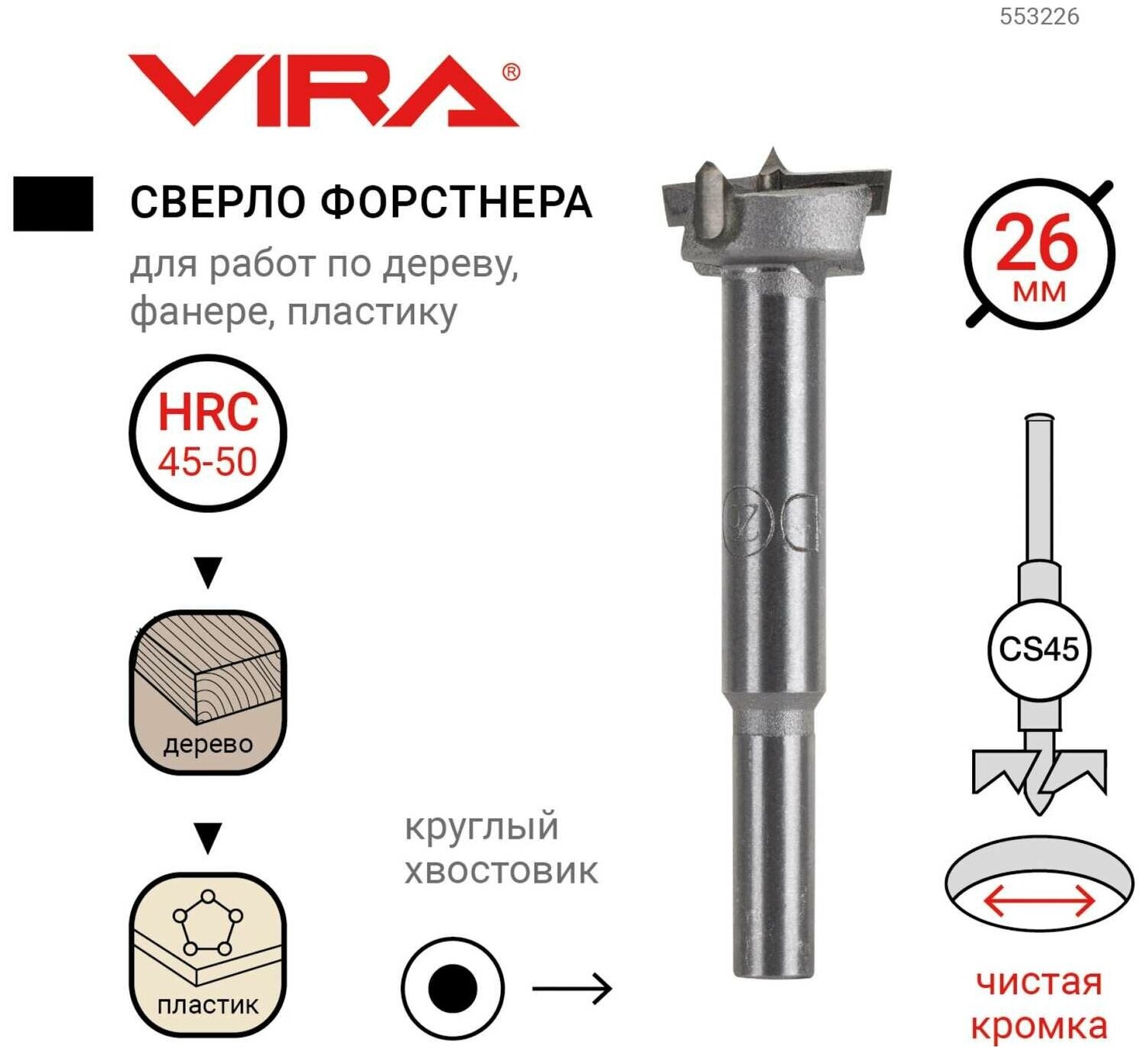 VIRA Сверло Форстнера 26 мм 553226 интересное: