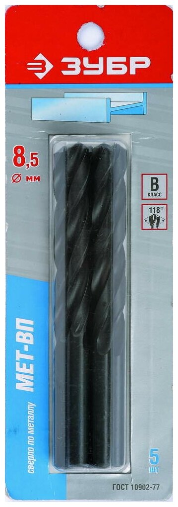 Сверло ЗУБР "МЕТ-ВП" по металлу парооксидированное, быстрорежущая сталь, 8,5х117мм, 5шт