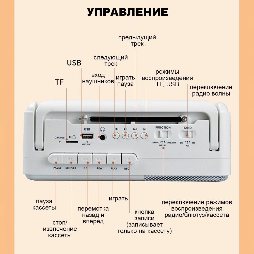 Кассетный магнитофон MyLatso плеер радиоприемник блютуз интересное: