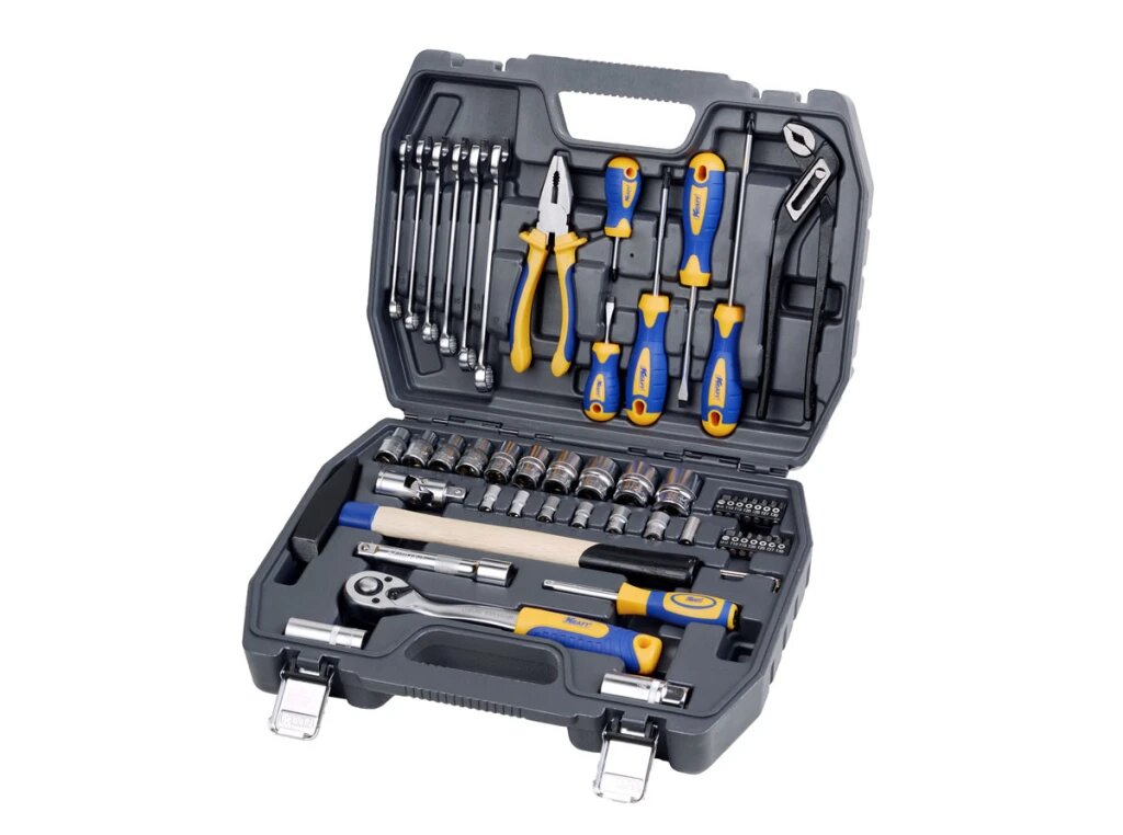 | Инструменты в комплекте | молоток / отвёртки / рукоять для бит / трещотка / пассатижи / ключи гаечные / ключ переставной гаечный / ключи имбусовые (шестигранные) |