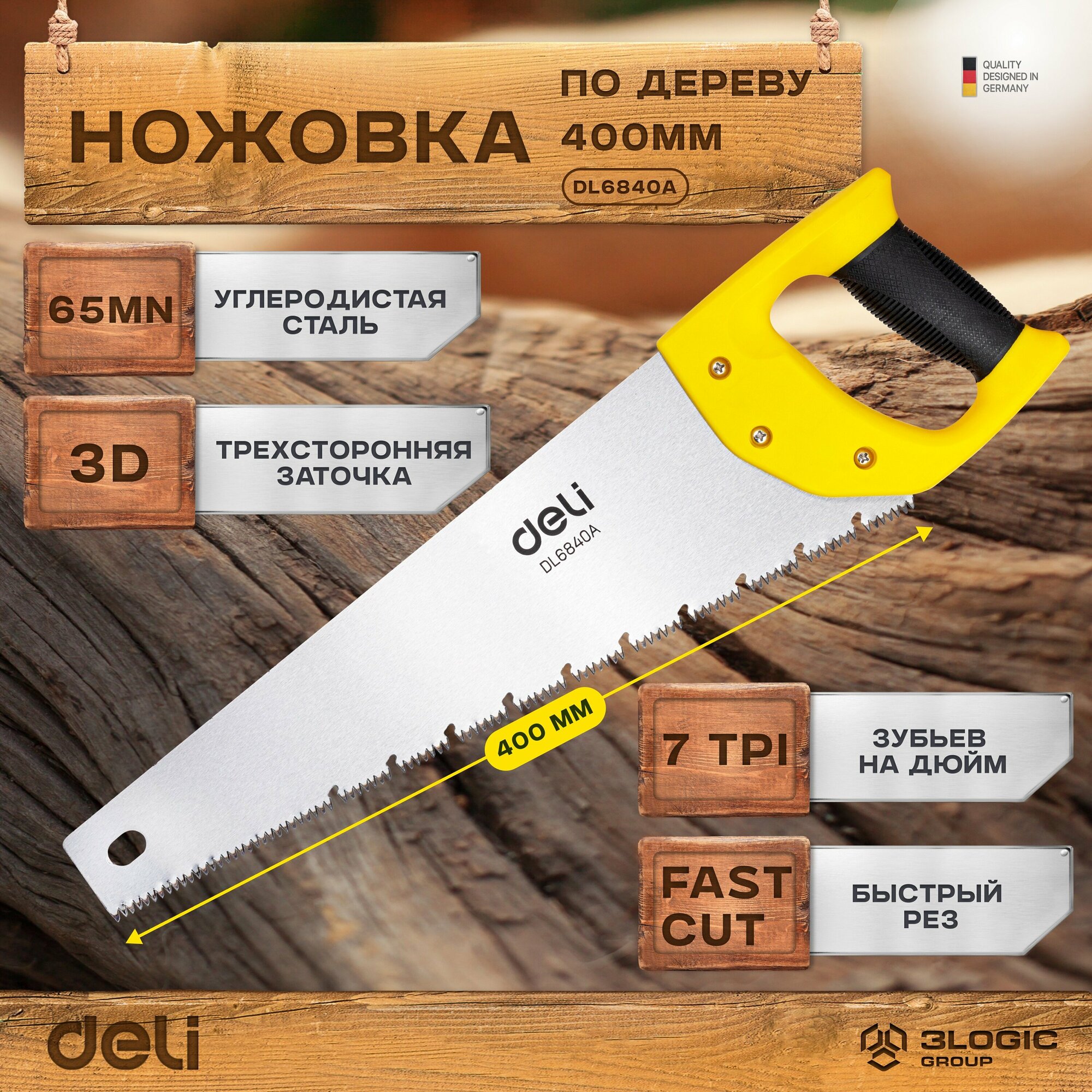 Ножовка по дереву Deli Dl6840a 400мм, 65Mn,термообработанная поверхность,шлифовка зубов с 3-х сторон .