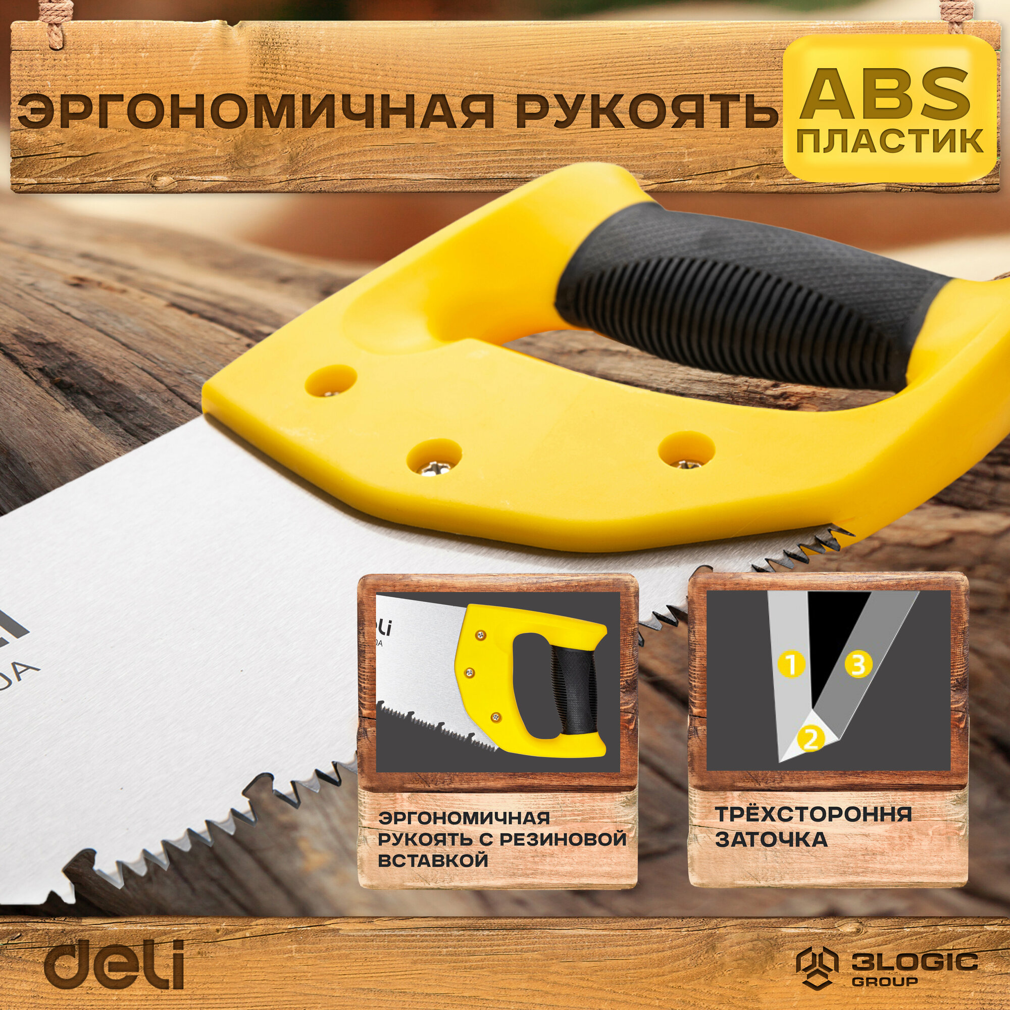 Ножовка (пила) по дереву Deli DL6840A 400мм (7-8 зубьев на дюйм, 3D заточка, противоскользящая прорезиненная рукоятка)