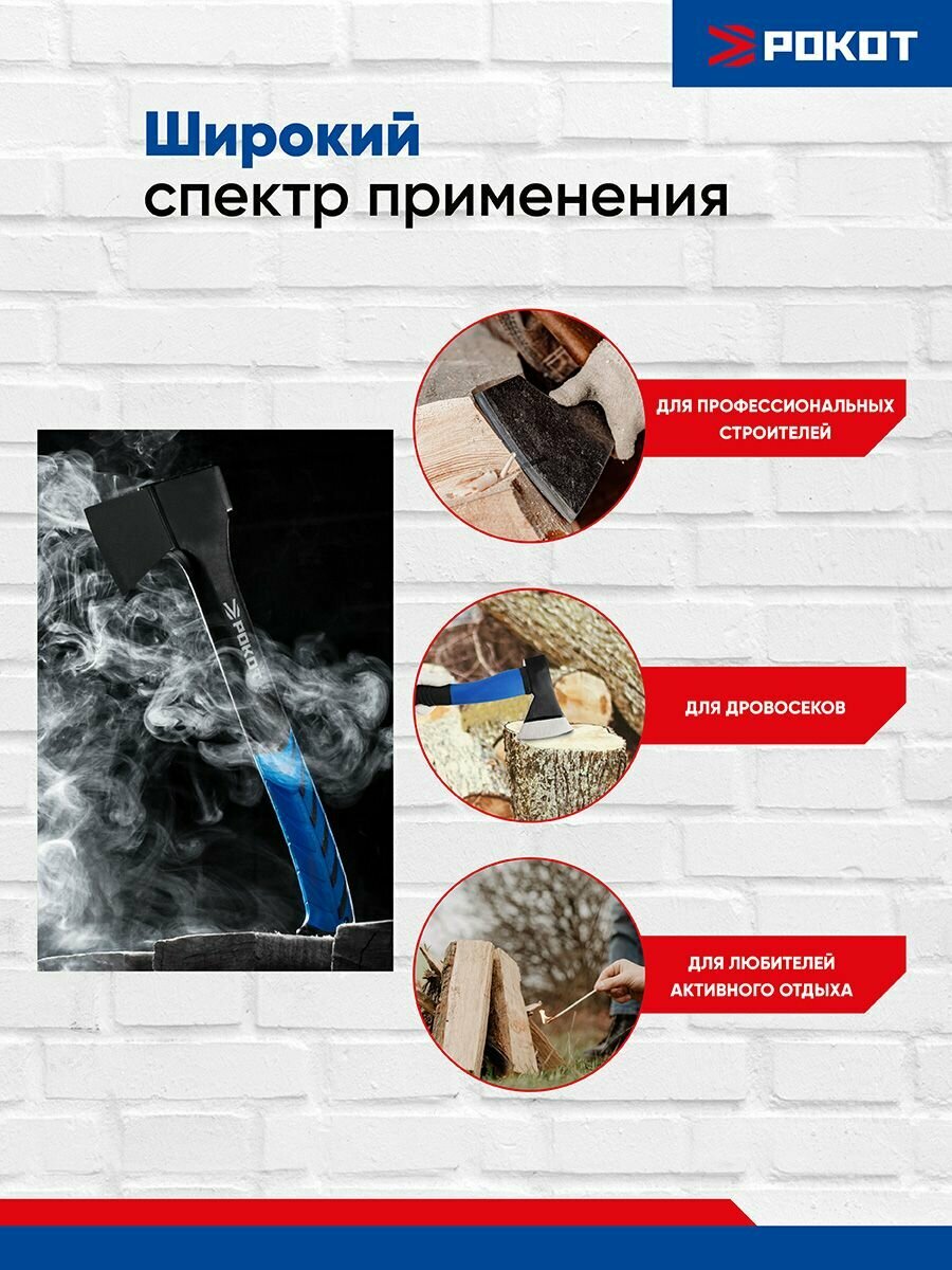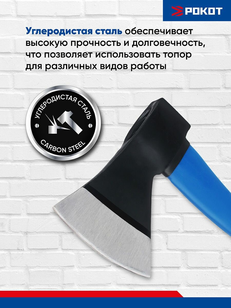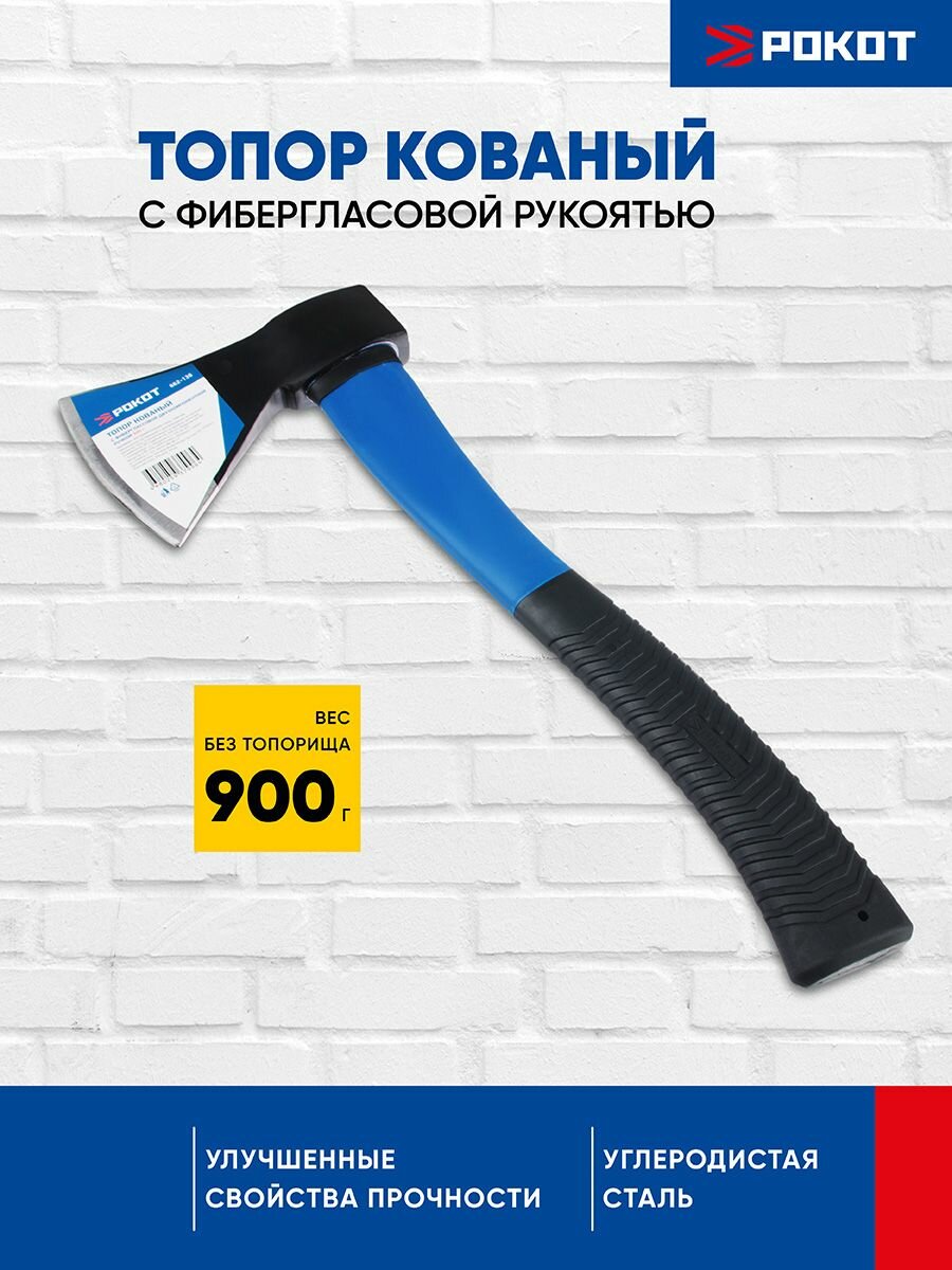 Рокот Топор кованый с фиберглассовой двухкомпонентной ручкой 900г