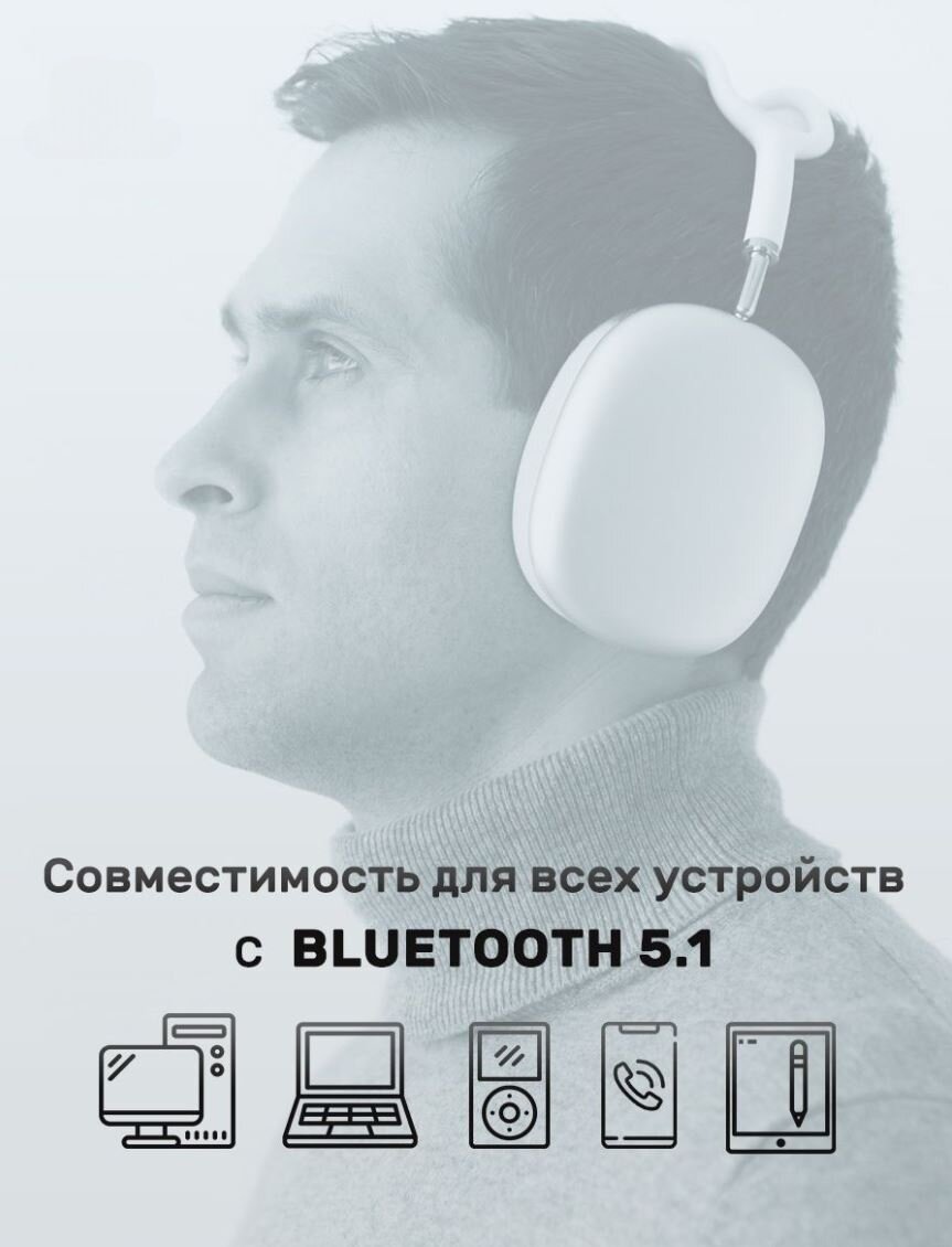Полноразмерные беспроводные наушники / Bluetooth 5.1 / TWS / MP3-плеер / AUX / Micro SD / Silver интересное: