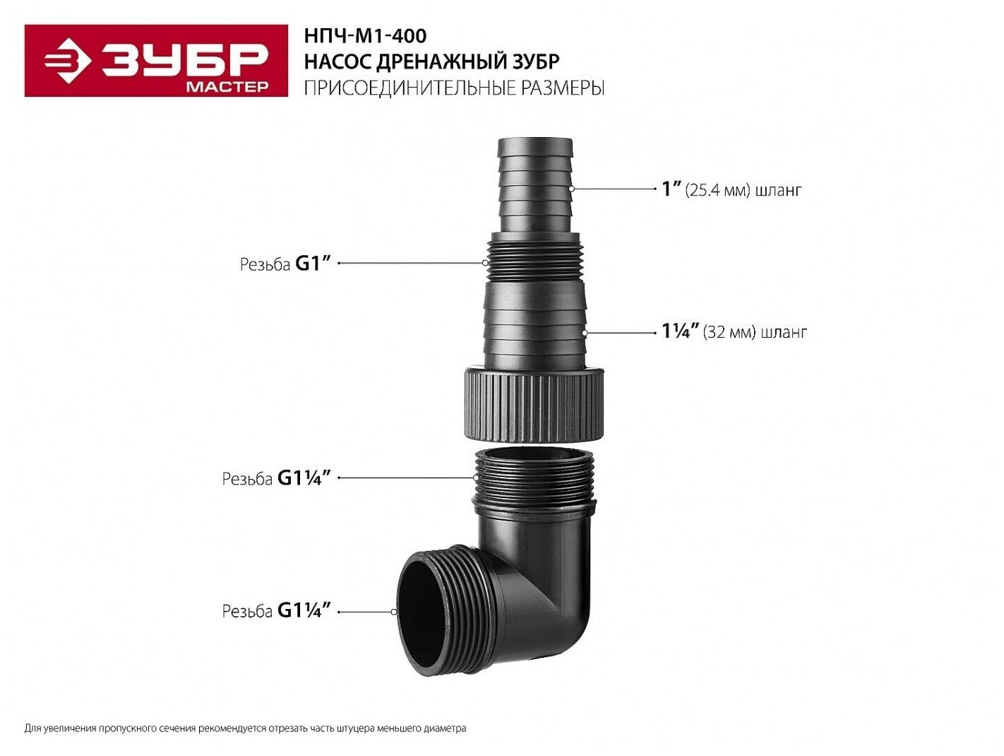 ЗУБР НПЧ-М1-400 дренажный насос с минимальным уровнем откачки, 400 Вт