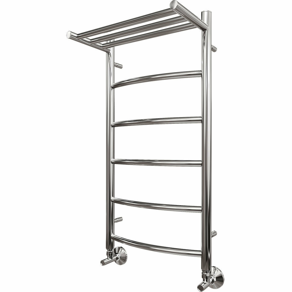 Полотенцесушитель водяной POINT Афина с полкой PN04148P 400*800, нержавеющая сталь, хром