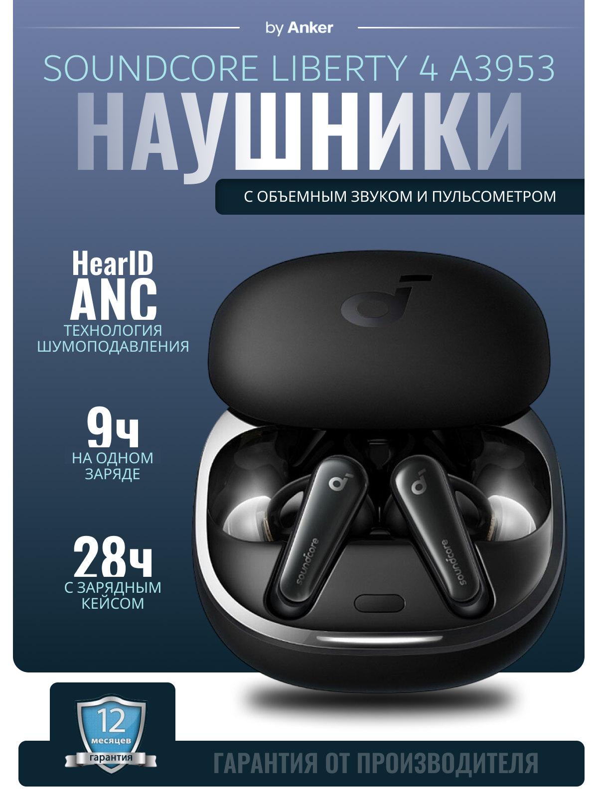 Anker Soundcore Liberty 4 midnight black tws с активным шумоподавлением