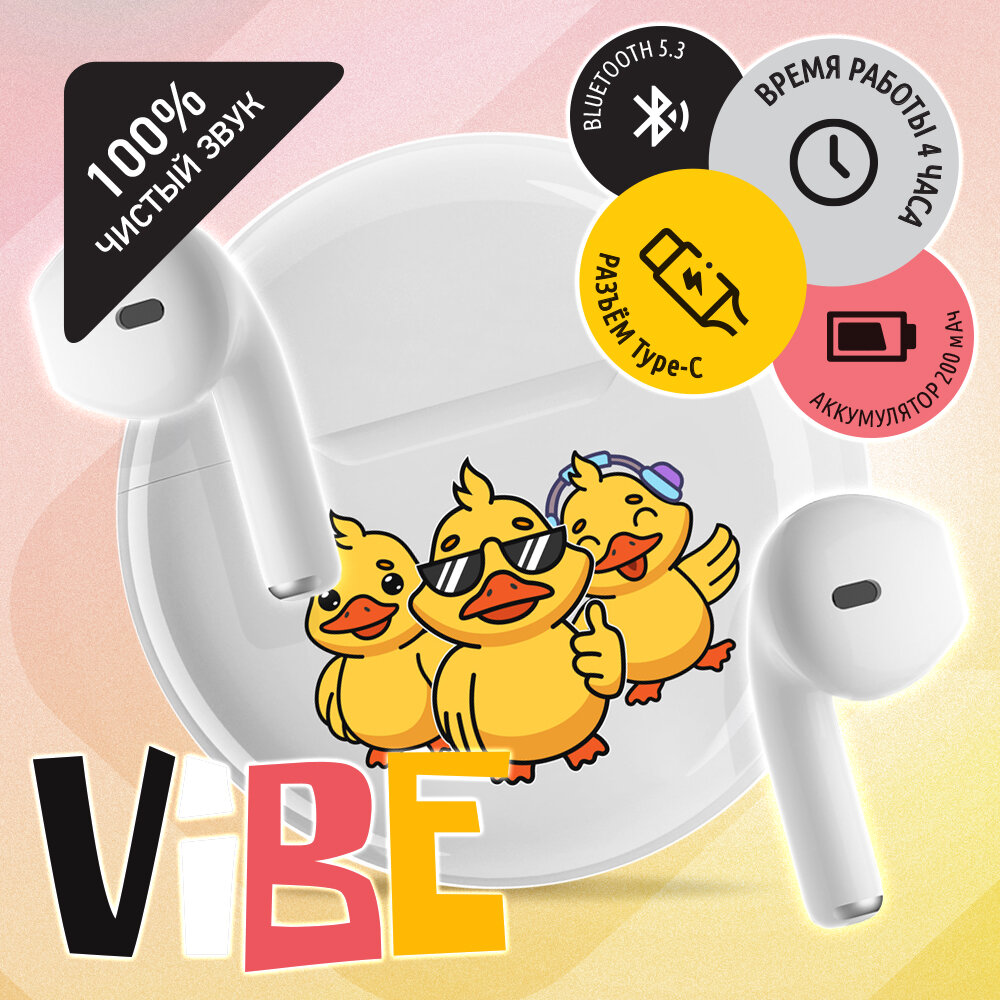 Наушники Qumo ViBE Ducks ВТ 0100 беспроводные, вкладыши, с микрофоном, TWS, Bluetooth, белый интересное: