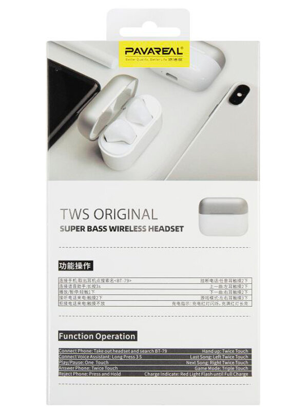 Bluetooth-наушники PAVAREAL (TWS) PA-BT79 беспроводные, белые интересное: