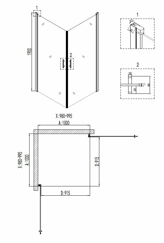 Душ. ограждение NG-6804-08 BLACK (100*100*190) квадрат, двери распашные, 1 место