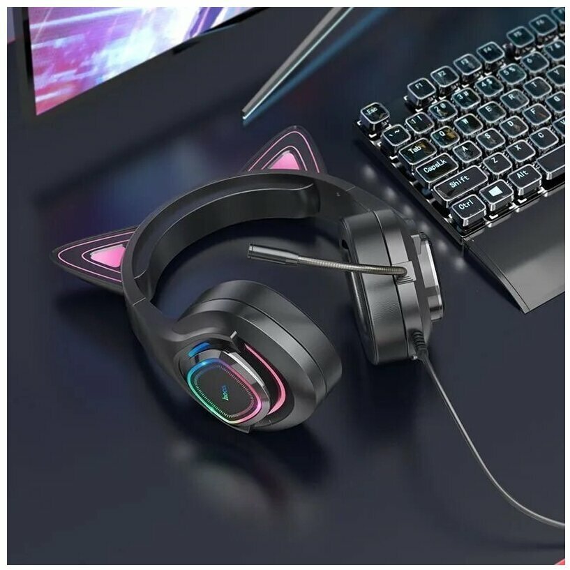 Наушники Hoco W107 Cute Cat Gaming с подсветкой Phantom cat призрачный кот