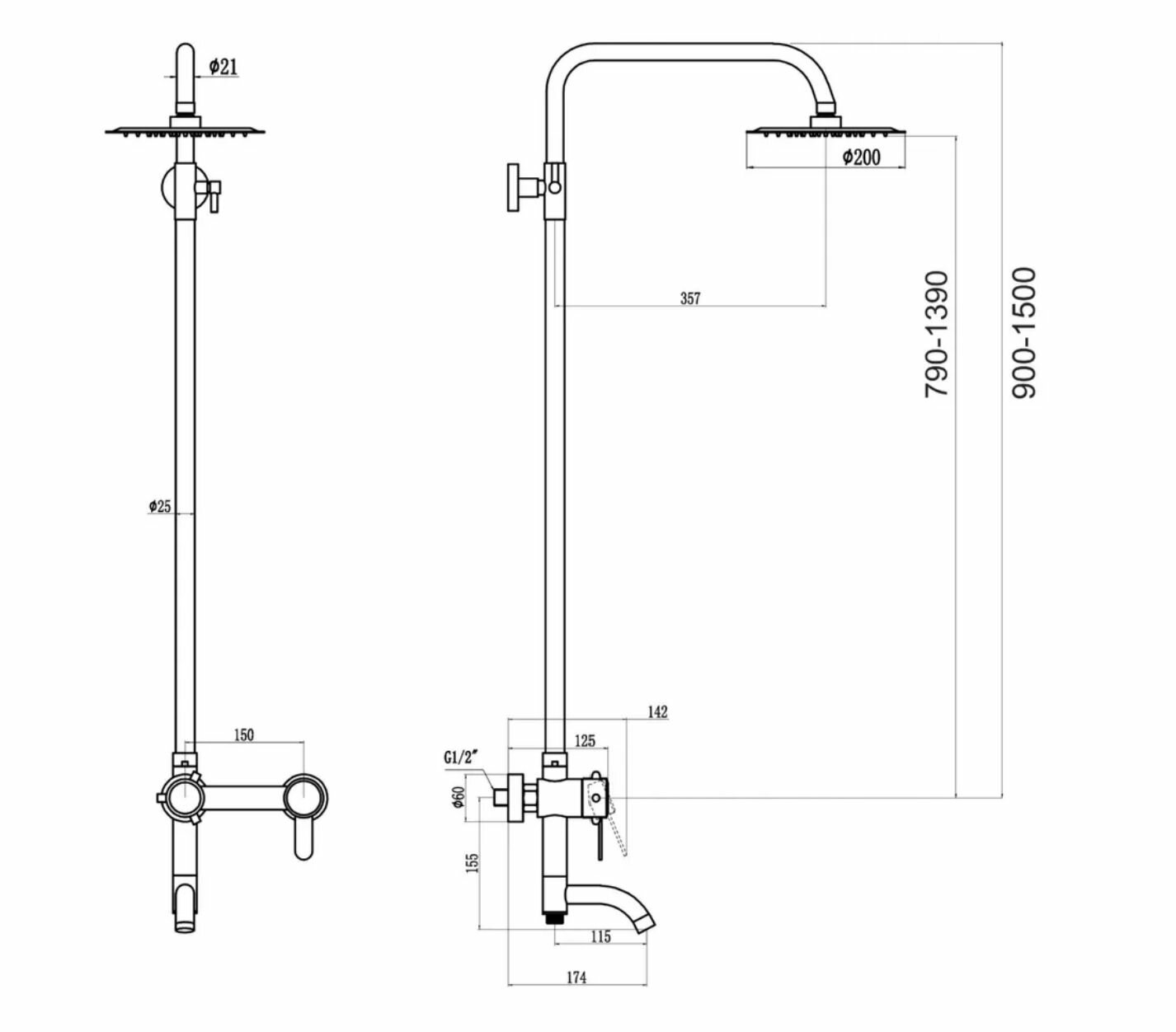 Душевая стойка со смесителем для ванны черная FS8345H Fmark
