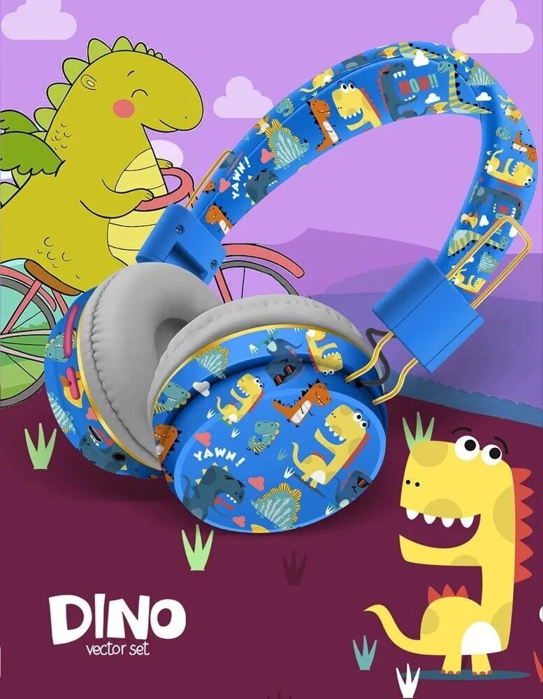 СохранитьНаушники беспроводные накладные детские bluetooth с USB зарядкой, FM Дино интересное: