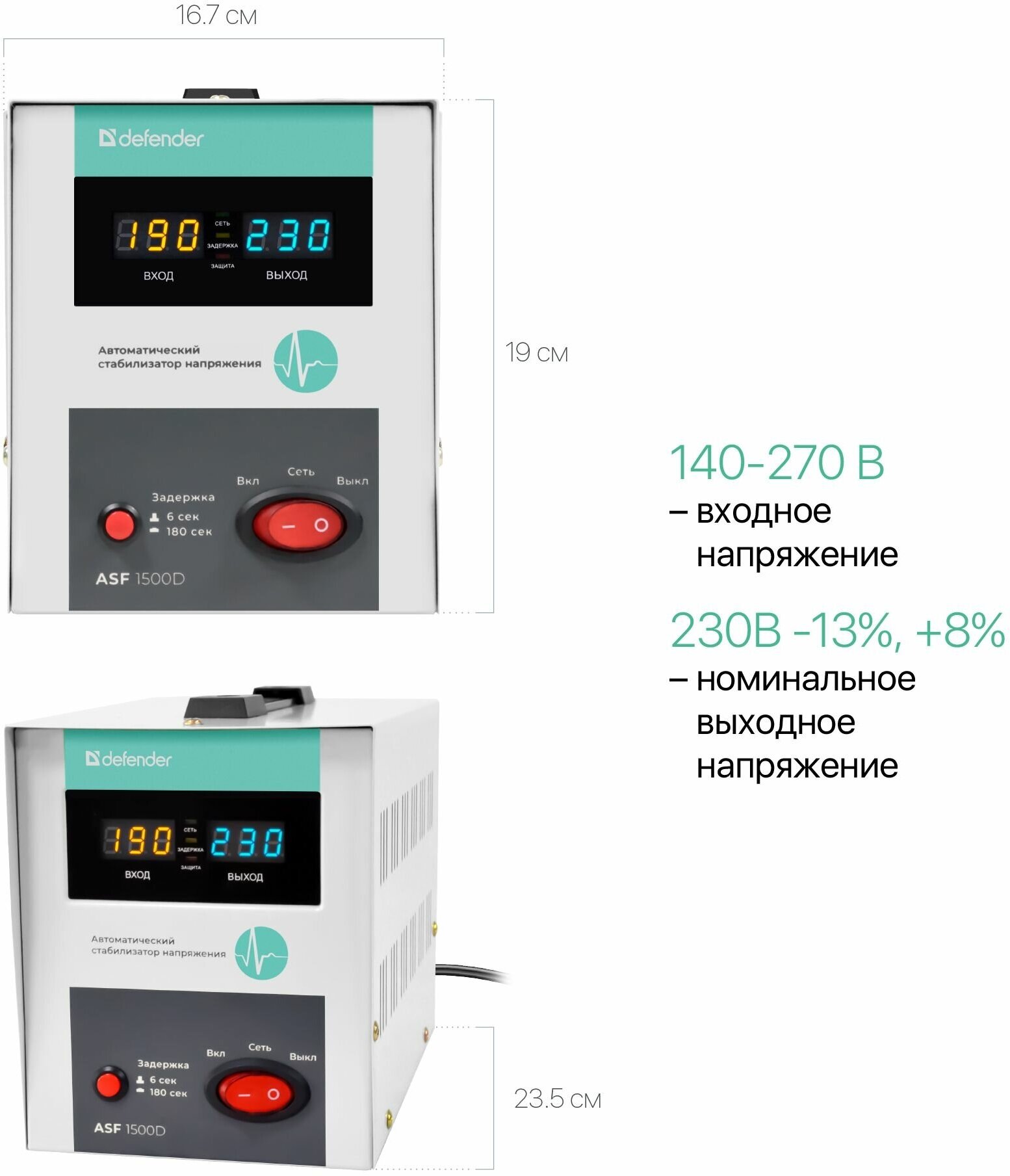 Стабилизатор напряжения Defender ASF 1500D напольный 900 Вт, 2 розетки