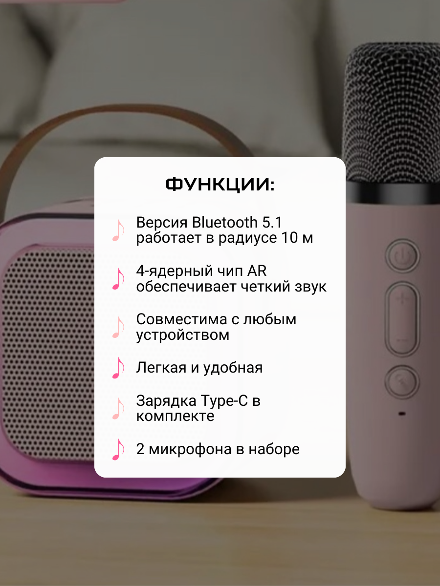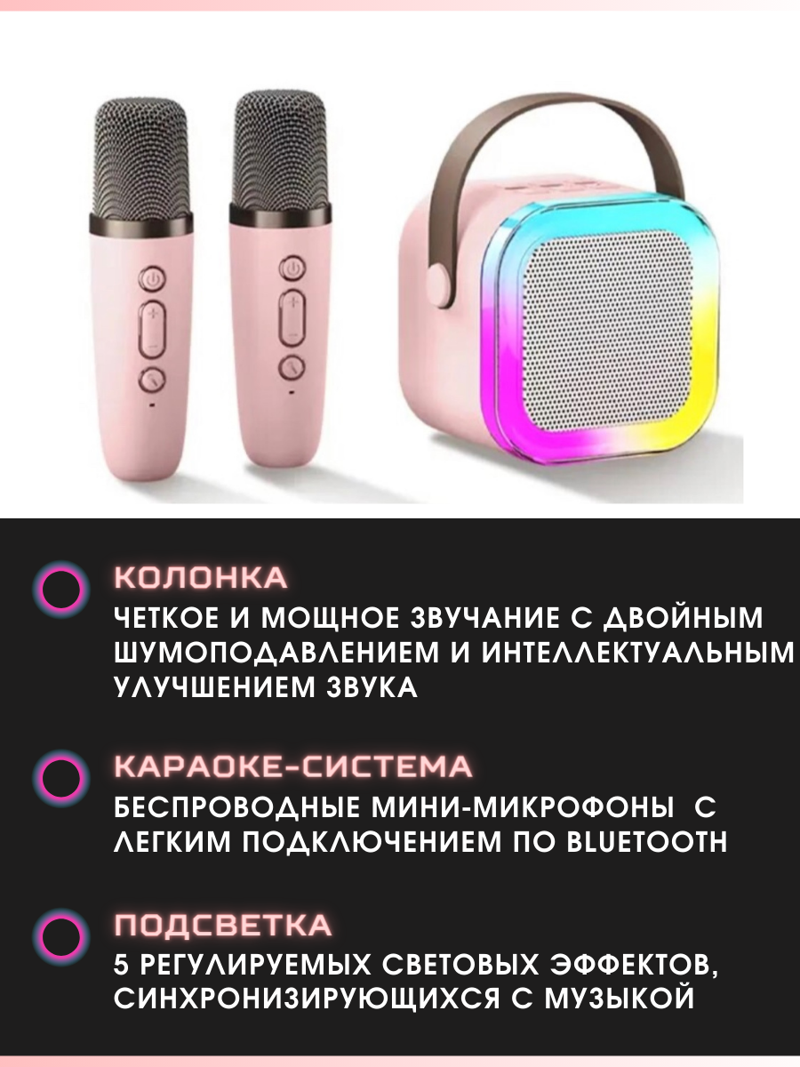 Портативная колонка караоке 2 микрофона с подсветкой интересное: