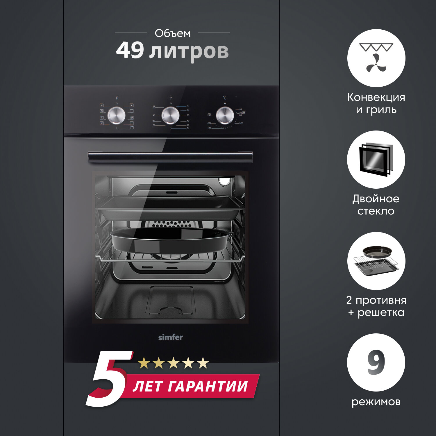 Электрический духовой шкаф Simfer B4ER19070 (9 режимов работы, конвекция, гриль)
