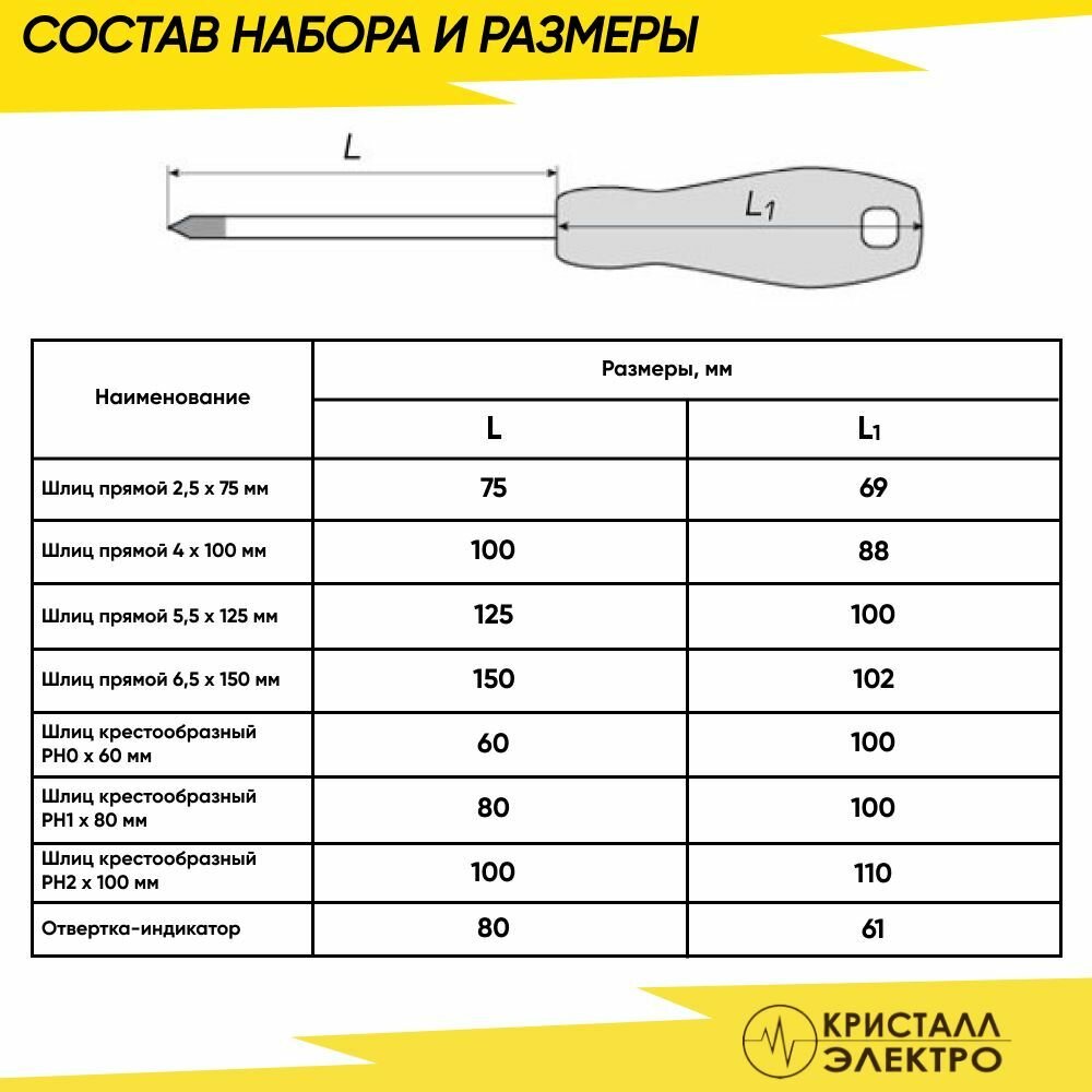 | Отвертки подробно | изолированные (до 1000 В): SL2.5х75, SL4.0х100, SL5.5х125, SL6.5х150, PH0х60, PH1х80, PH2х100 |