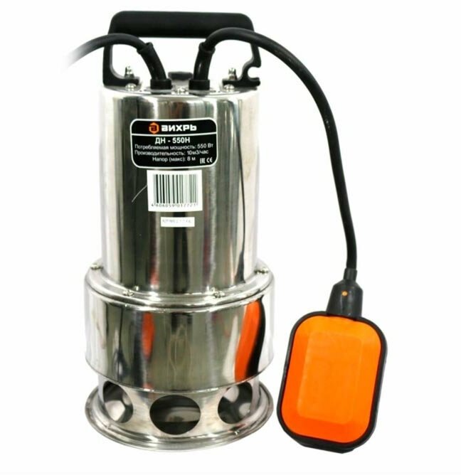 Вихрь ДН-550Н - 5,5 тыс. руб. Но отдать ему должное, проблем с эксплуатацией не было ни разу. Можно откачивать не только чистую воду, но и жидкости из сливных ям, септики биотуалетов, и пр. Наличие больших твердых частиц на работоспособность не влияют. |