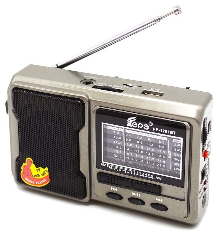 Ниже Вы можете прочитать отзывы на Радиоприемник AM-FM-SW с bluetooth, фонарем и аккумулятором FP-1781BT0 Fepe, ознакомится с подробными характеристиками, посмотреть интересные обзоры и фотографии на Радиоприемник AM-FM-SW с bluetooth, фонарем и аккумулятором FP-1781BT0 Fepe.