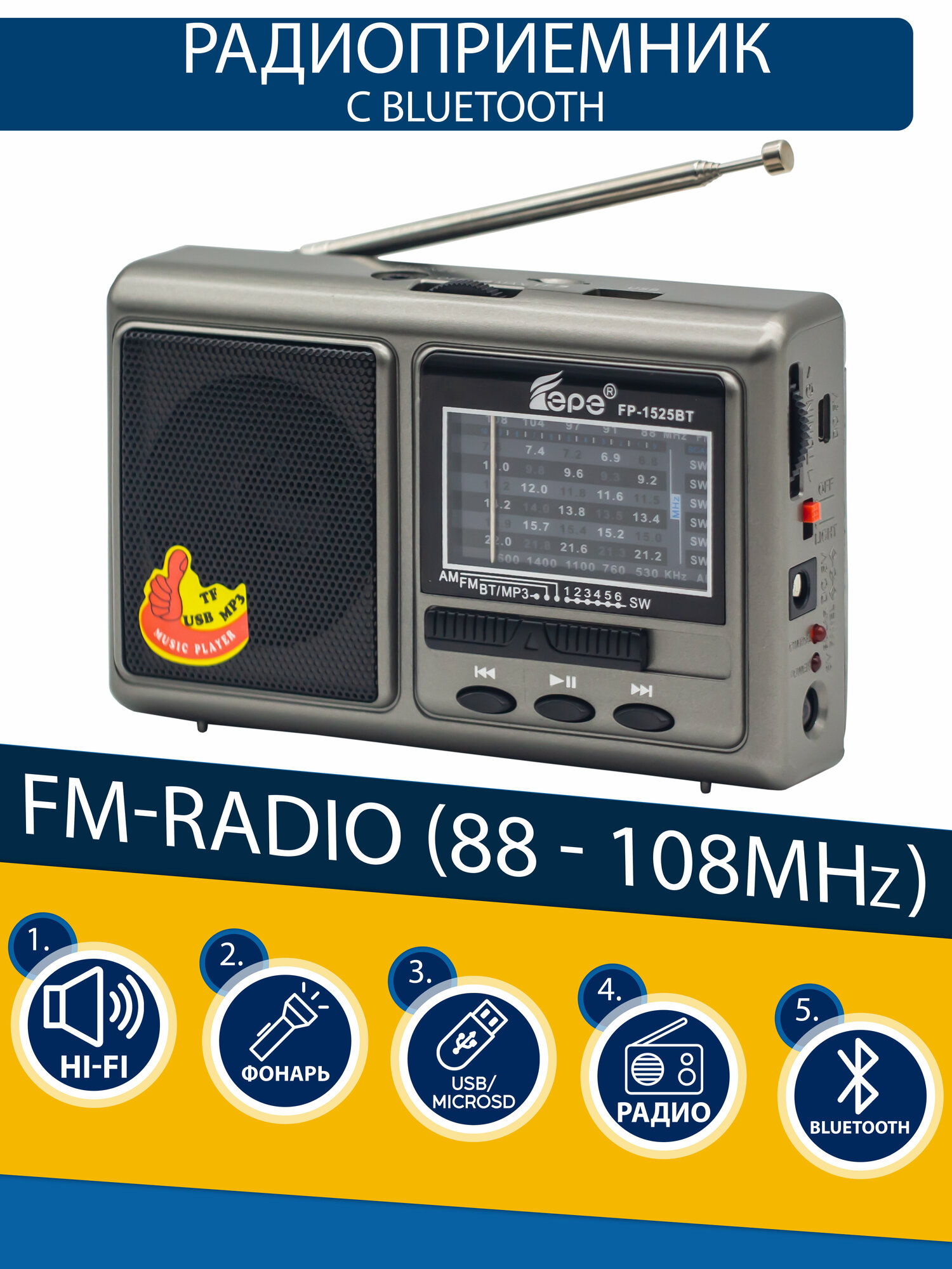 Радиоприемник AM-FM-SW с bluetooth, фонарем и аккумулятором FP-1781BT0 Fepe интересное: