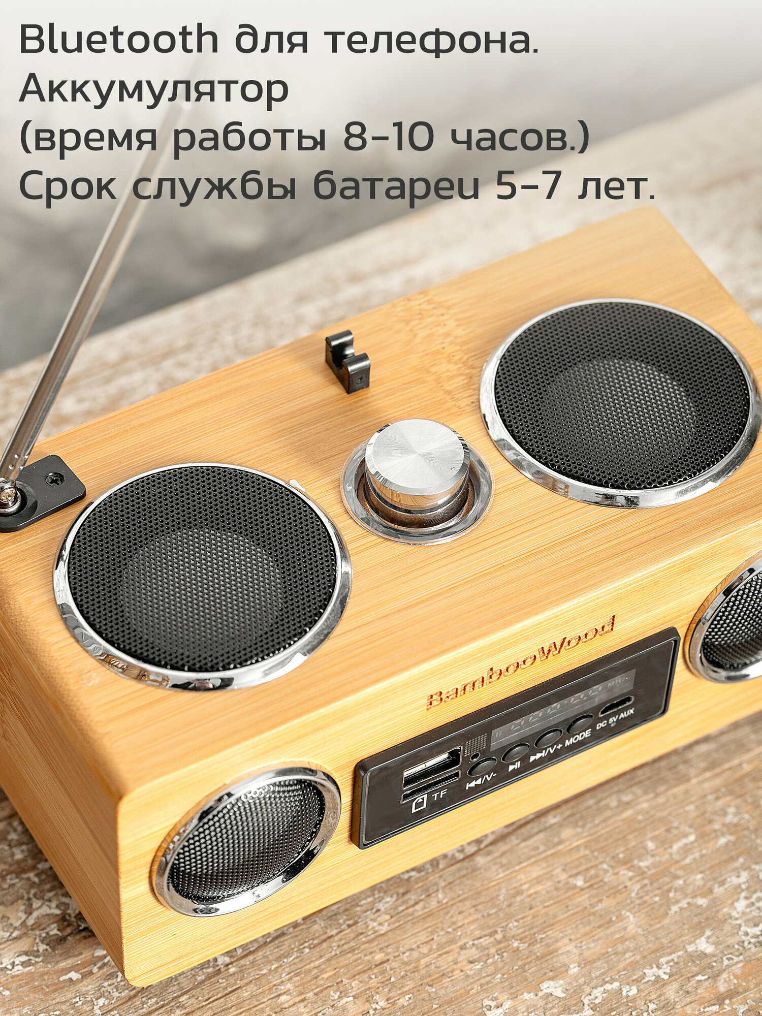 Bluetooth радиоприемник на аккумуляторе Bamboowood интересное: