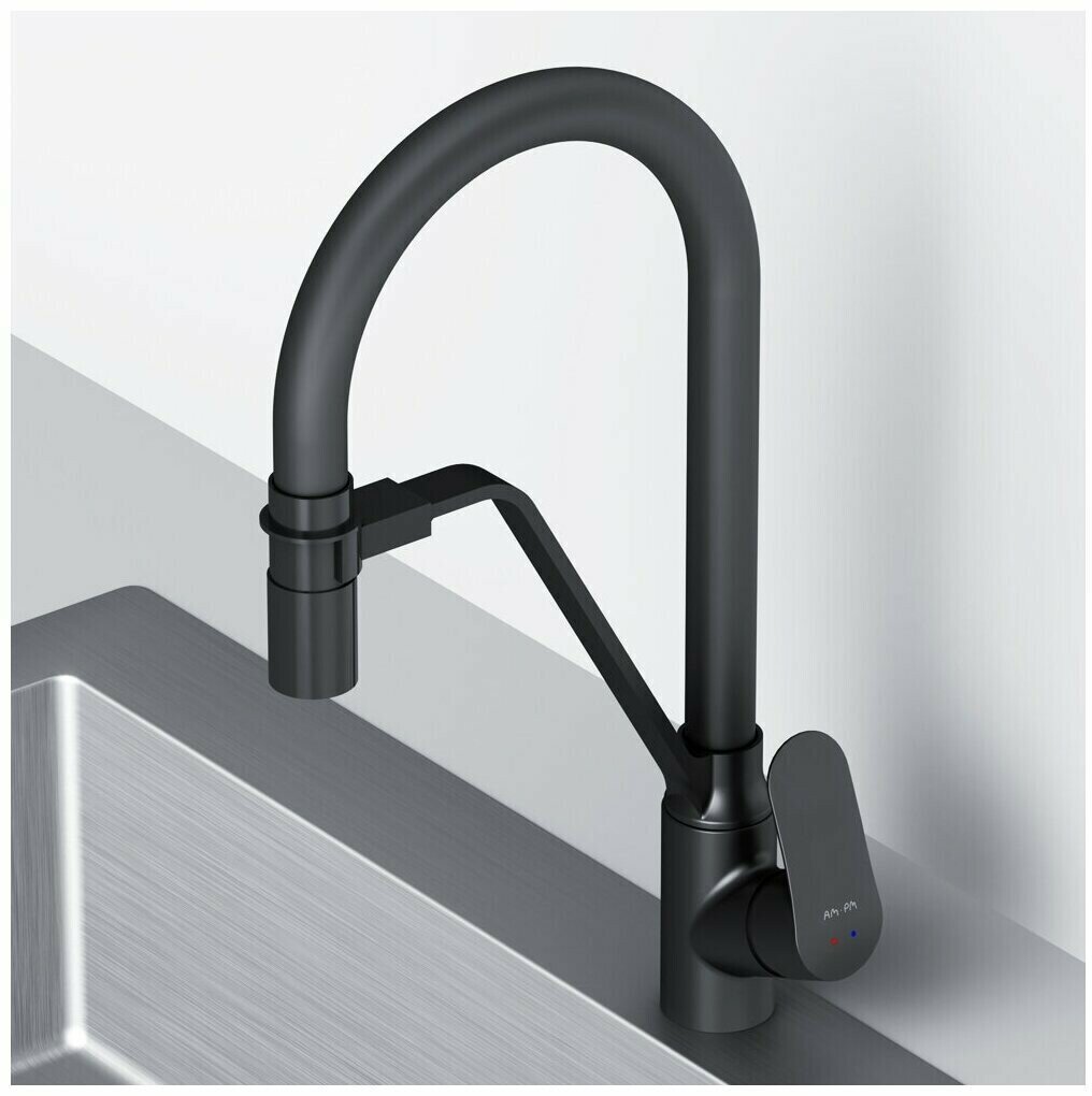 Смеситель для кухни AM.PM Like F8007822 с каналом для питьевой воды и гибким изливом, черный
