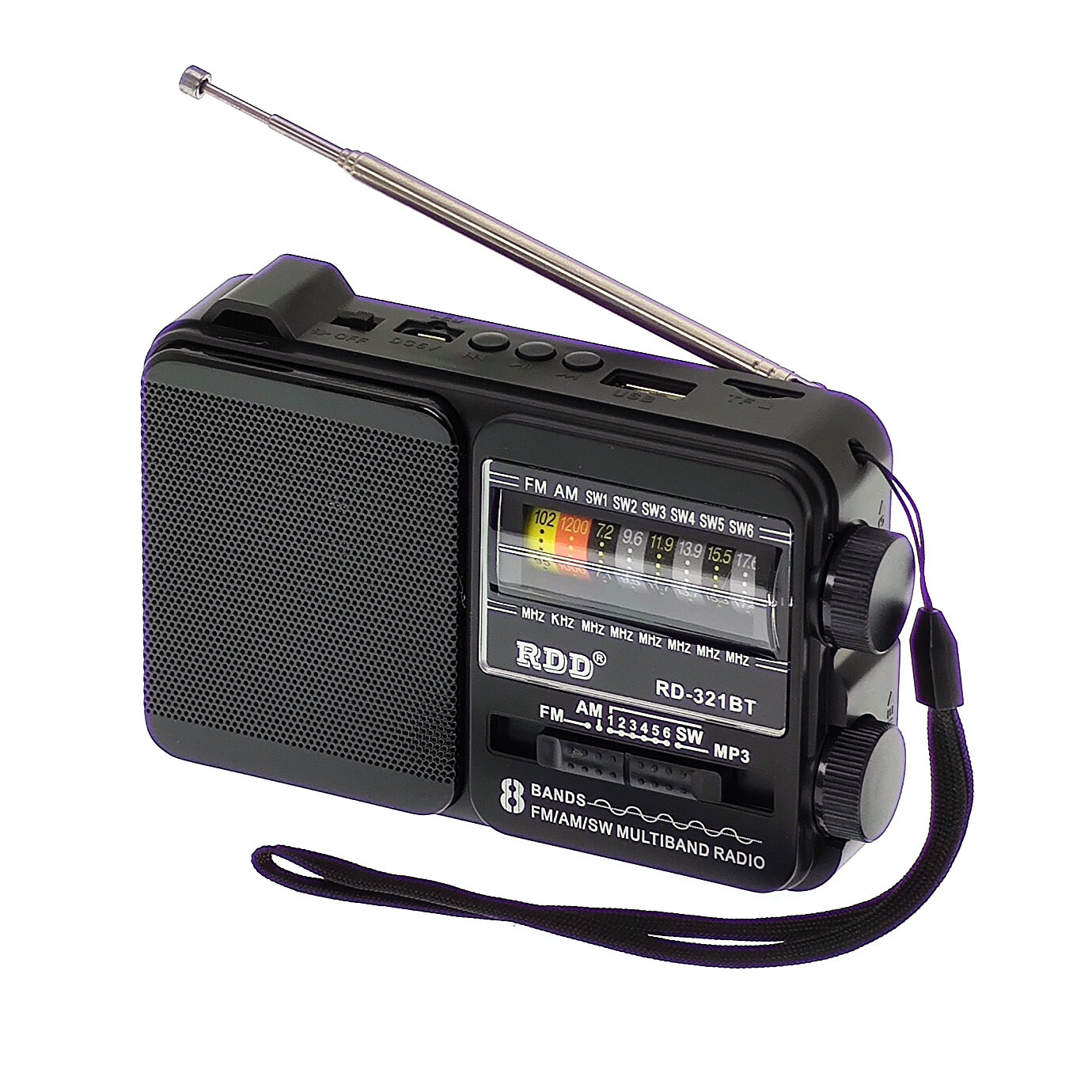 Портативный радиоприемник радио с фонариком (USB,TF,Bluetooth) RD-321BTчерный RDD интересное: