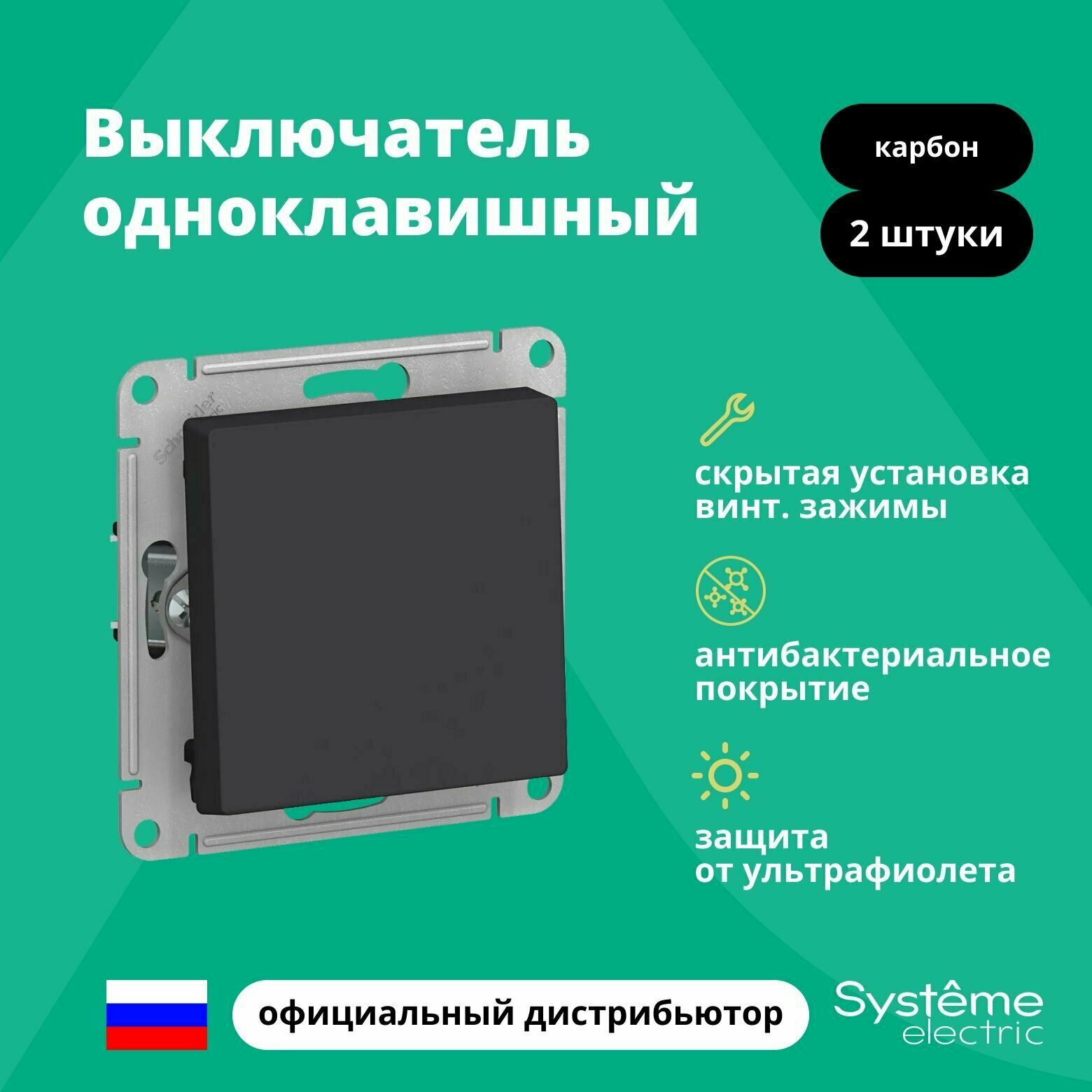 СохранитьВыключатель одноклавишный карбон 2шт Schneider Electric Atlas Design ATN001011 интересное: