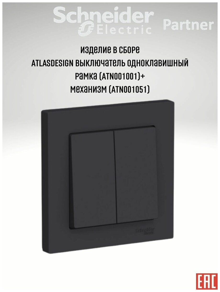 Выключатель одноклавишный с подсветкой (грифель), сх.1а, 10АХ, механизм Schneider Electric AtlasDesign (комплект 6шт)