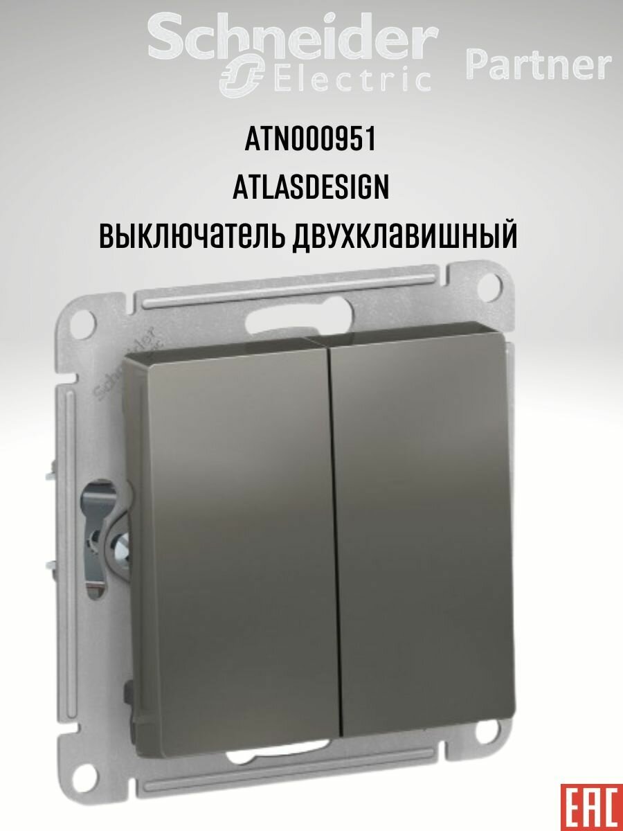 СохранитьВыключатель двухклавишный Schneider Atlasdesign 10А, сталь механизм ATN000951, комплект 5 шт интересное: