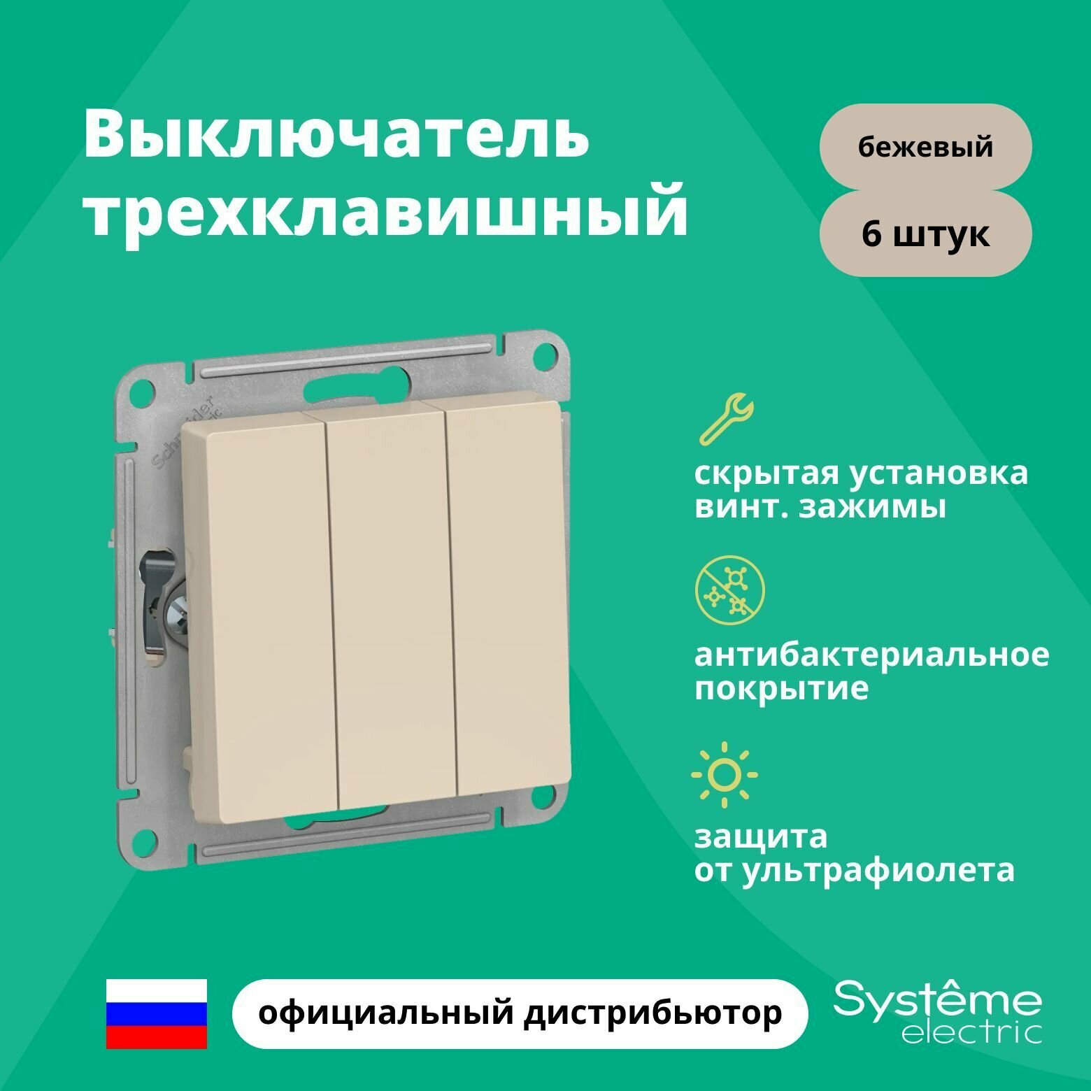 Купить Выключатель трехклавишный Schneider Electric (Systeme Electric) Atlas Design механизм бежевый ATN000231 6шт