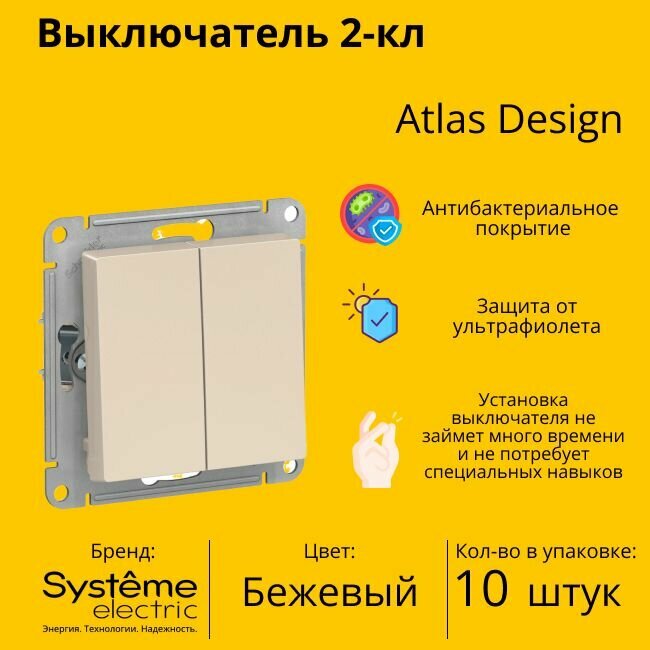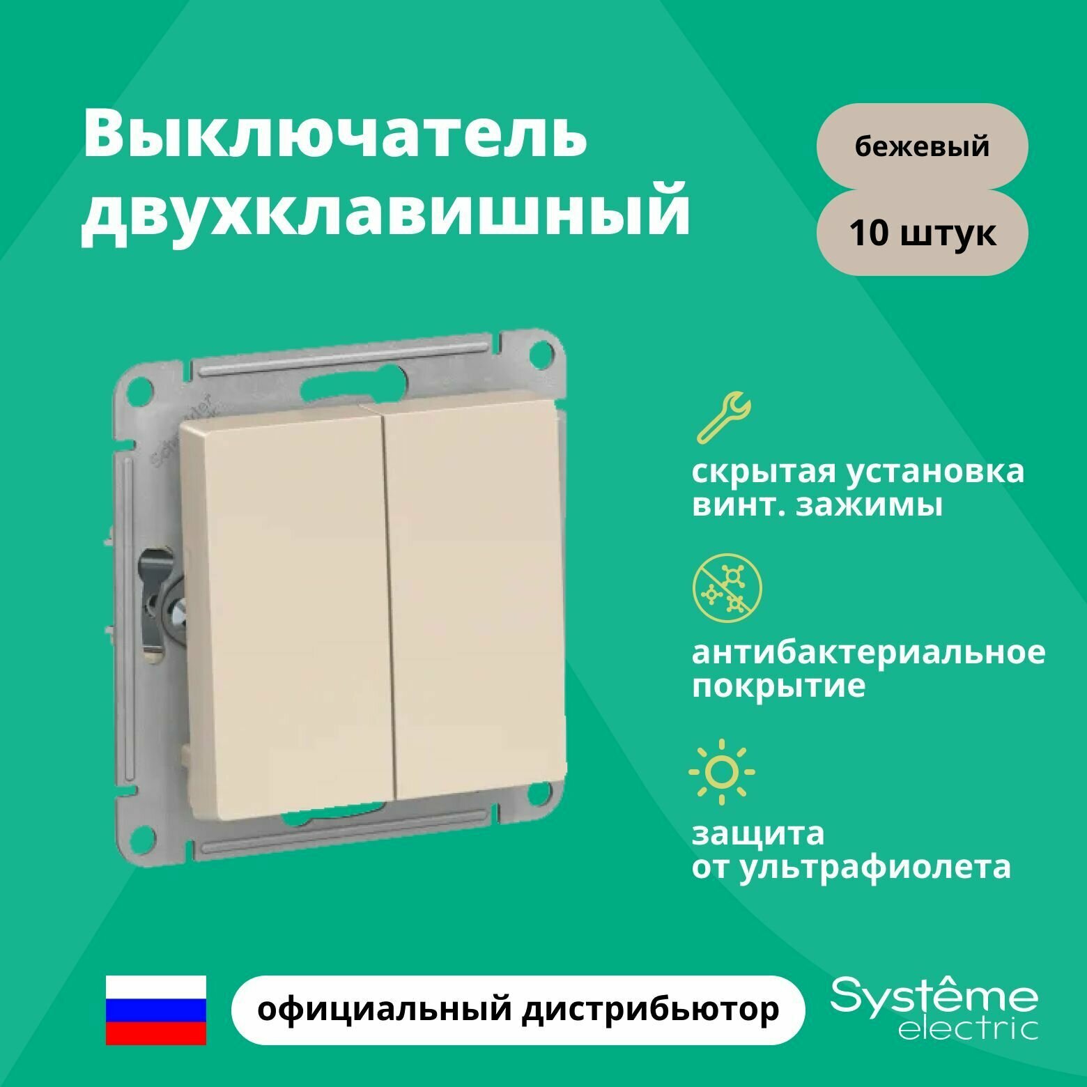 Купить Выключатель 2-клавишный ATLASDESIGN, скрытый монтаж, бежевый. ATN000251 Schneider Electric (10шт.)