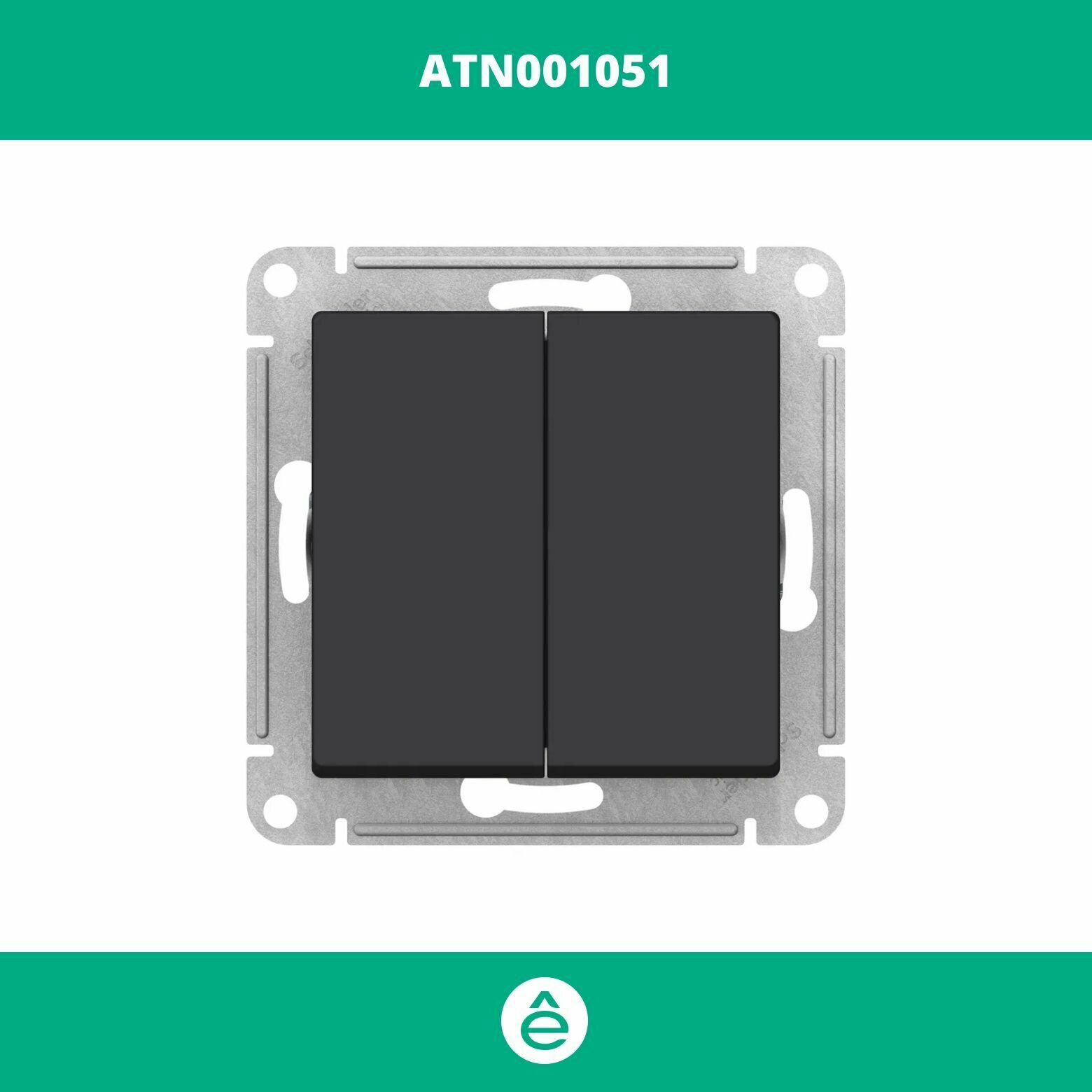 Переключатель двухклавишный карбон сх.6, 10АХ, механизм Schneider Electric AtlasDesign (комплект 9шт)