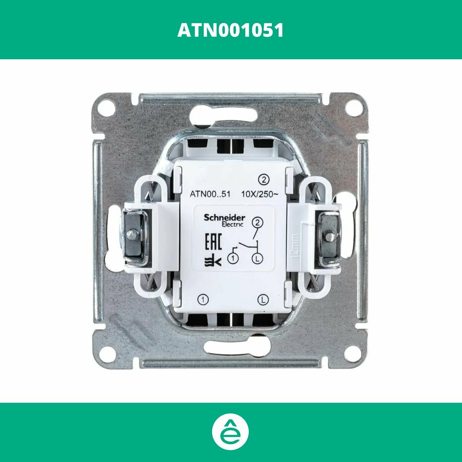 Переключатель двухклавишный изумруд сх.6, 10АХ, механизм Schneider Electric AtlasDesign (комплект 6шт)