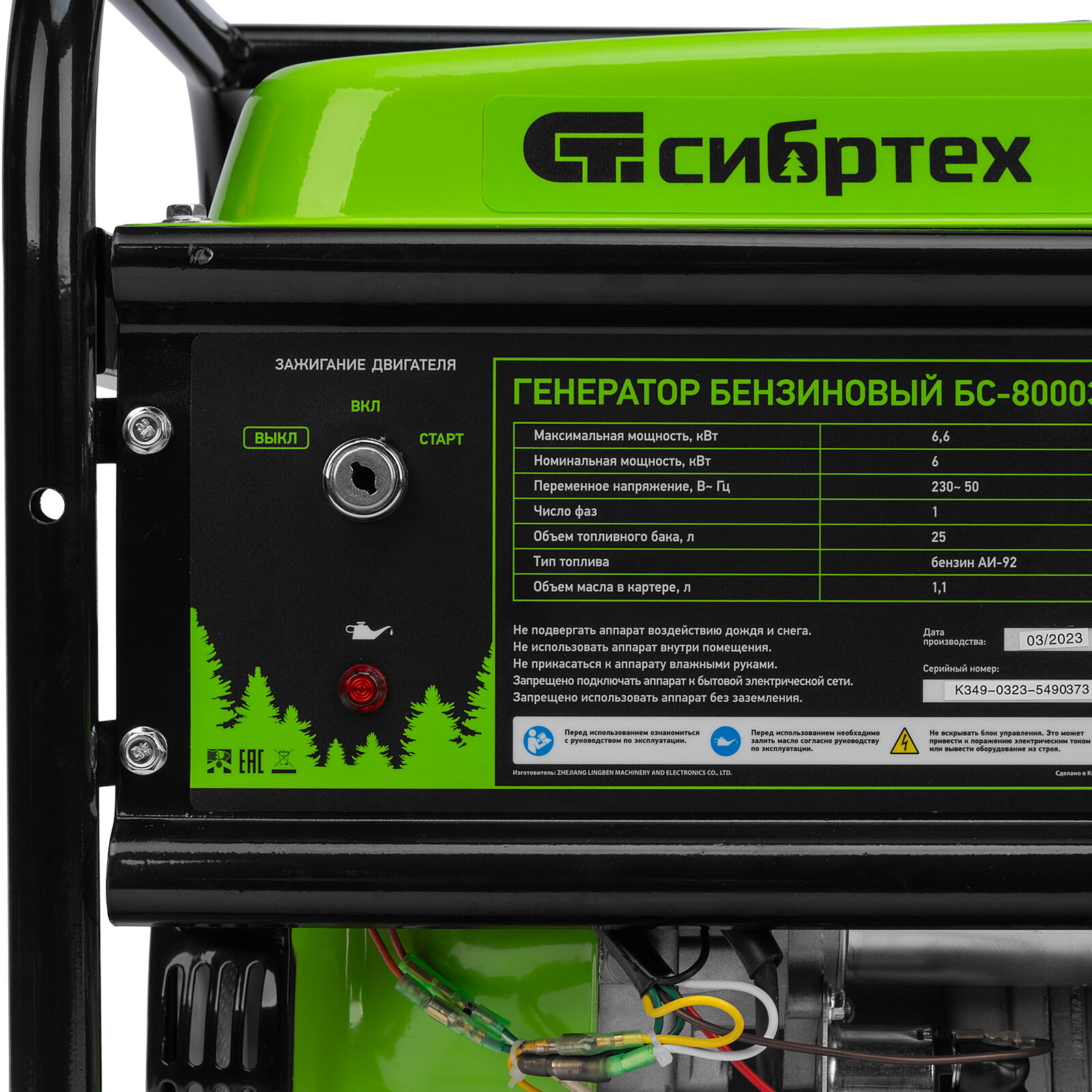 Генератор Сибртех БС-8000Э, 6.6 кВт