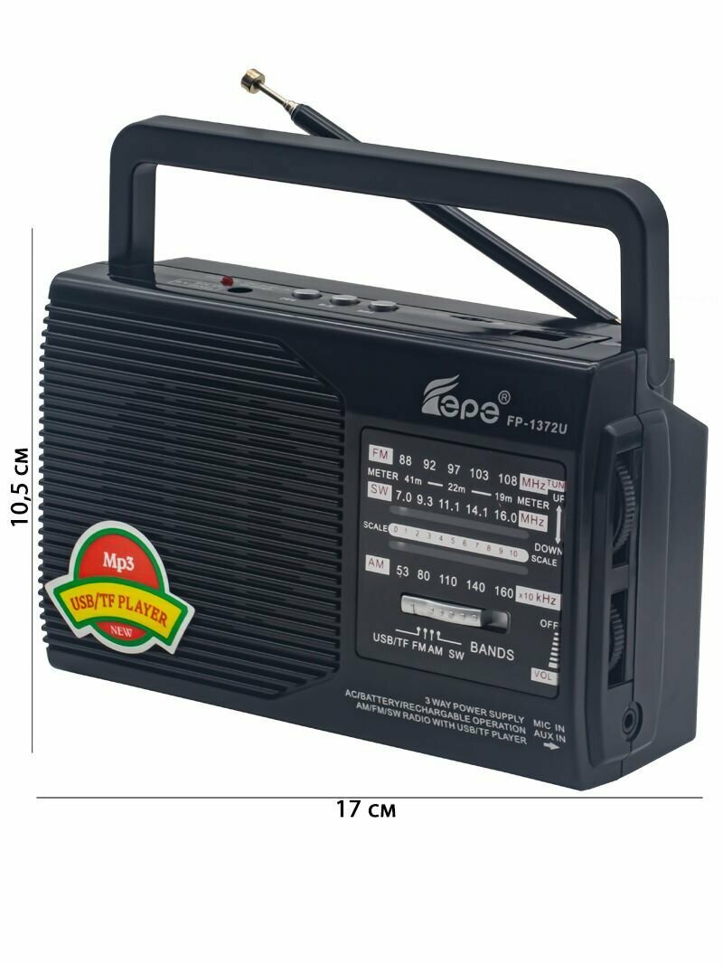 Ниже Вы можете прочитать отзывы на Радиоприемник AM-FM-SW, питание от сети 220В, на батарейках FP-1372U черный Fepe, ознакомится с подробными характеристиками, посмотреть интересные обзоры и фотографии на Радиоприемник AM-FM-SW, питание от сети 220В, на батарейках FP-1372U черный Fepe.