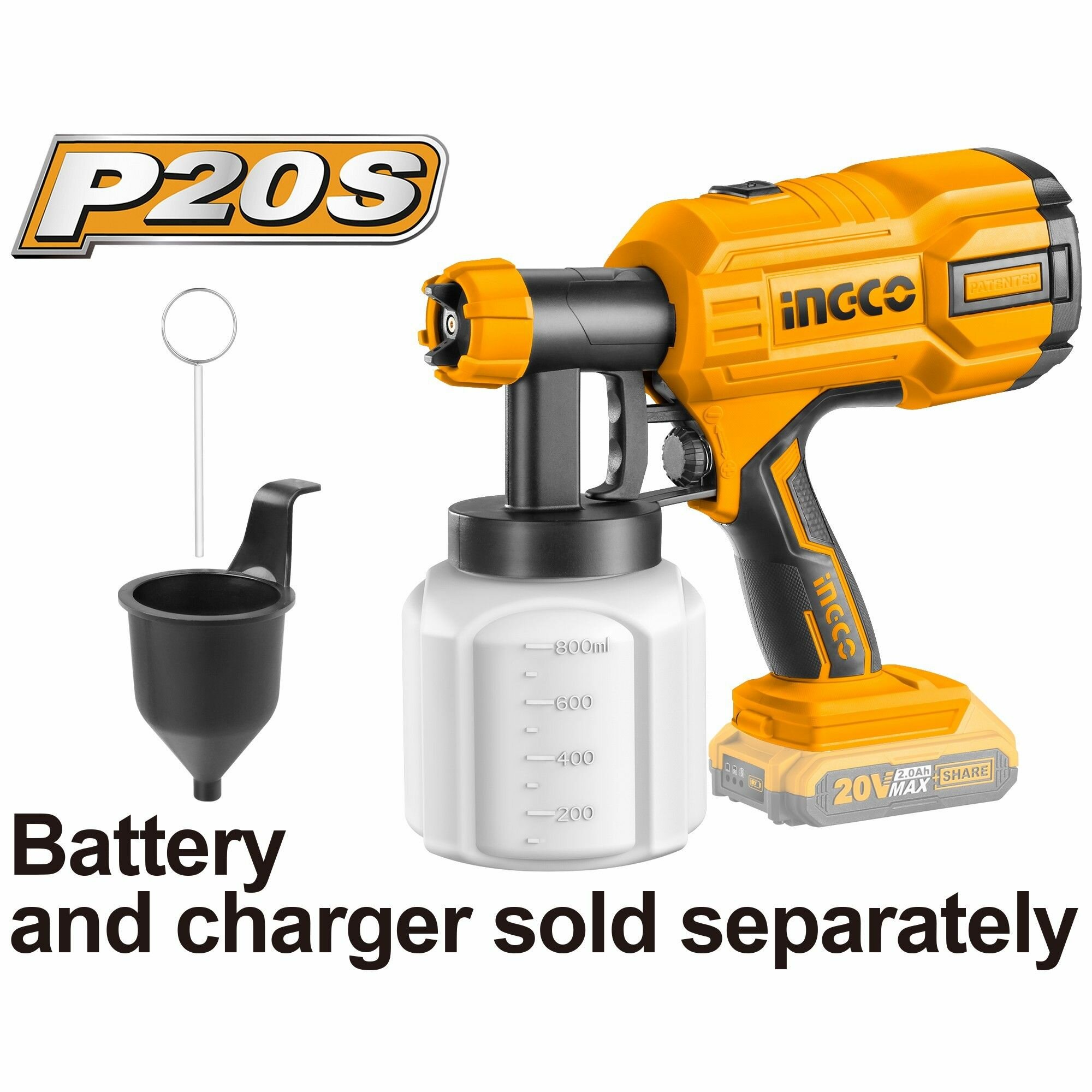 INGCO CSGLI2001 Краскораспылитель аккумуляторный 20В 0.8л (без АКБ и ЗУ) INGCO