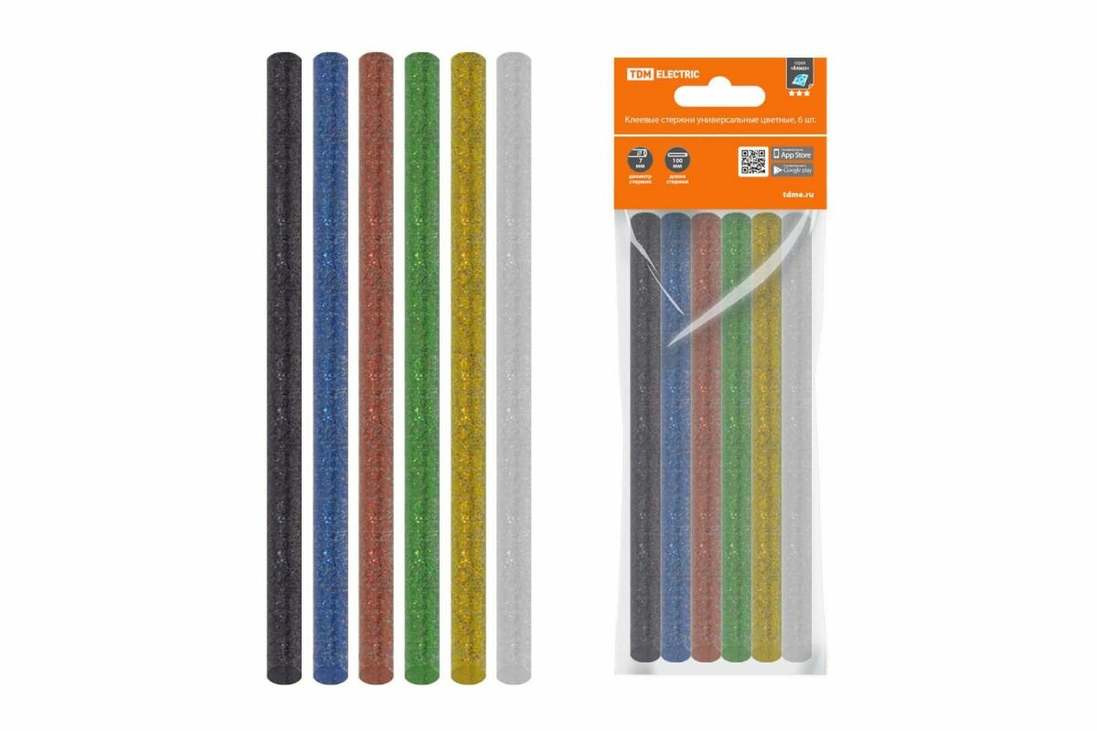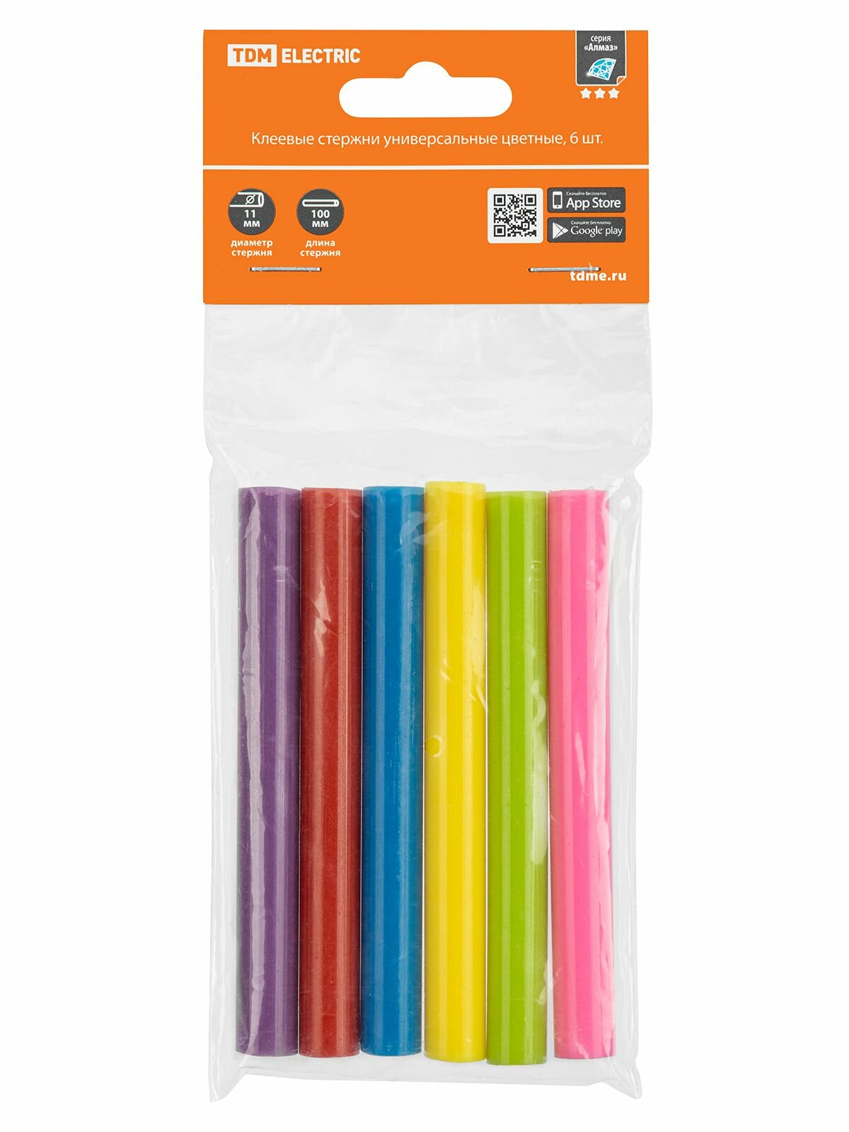 Клеевые стержни TDM универсальные цветные, 11 мм x 100 мм, набор 6 шт, "Алмаз"