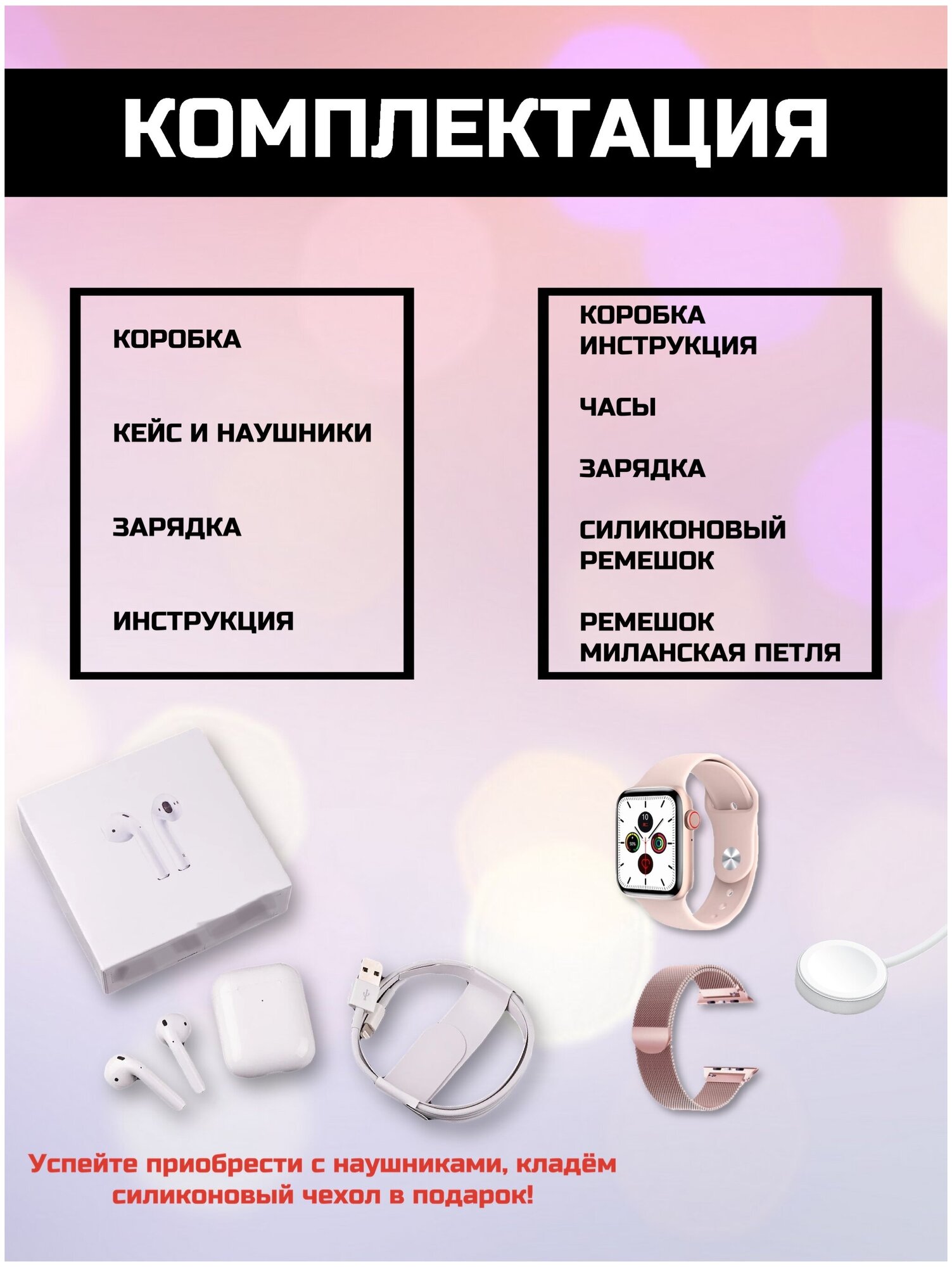 Умные часы 7 серия с вторыми наушниками в подарок розовые интересное:
