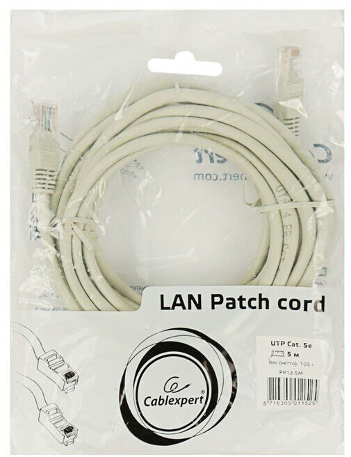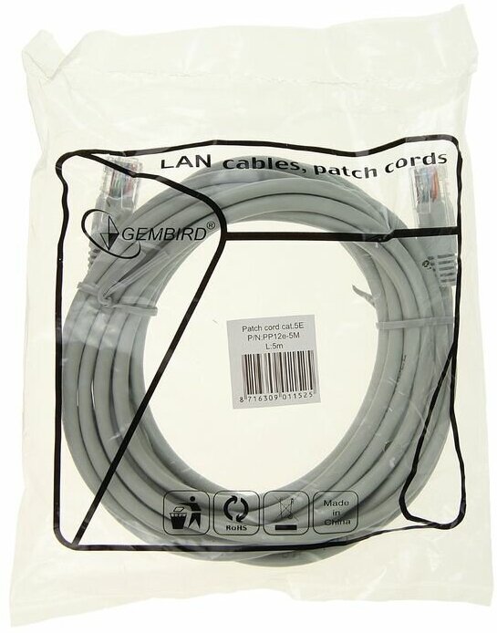 Кабель UTP 5E Gembird, 5 м., серый (PP12-5M)